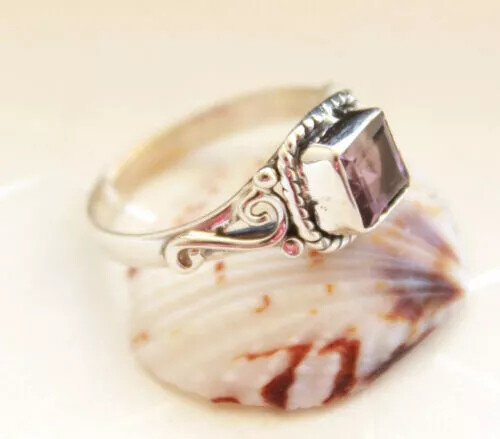 Solid 925 Sterling Silver Amethyst Stone Ring Woman Partywear Ring All Size R183