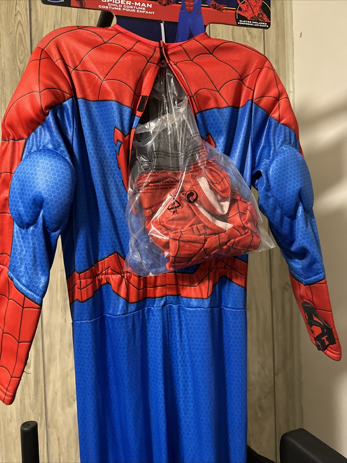 как выглядит JAZWARES KIDS SPIDER-MAN PADDED JUMPSUIT COSTUME W/ GLOVES MASK SIZE 7-8 NEW фото