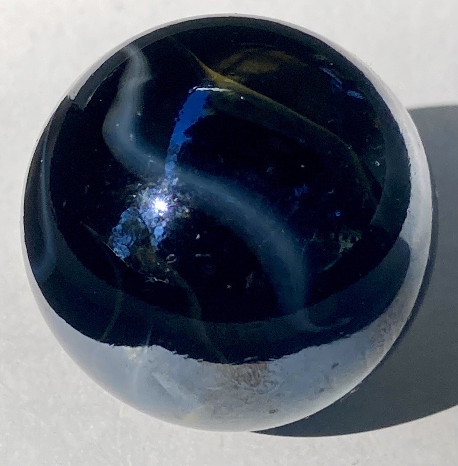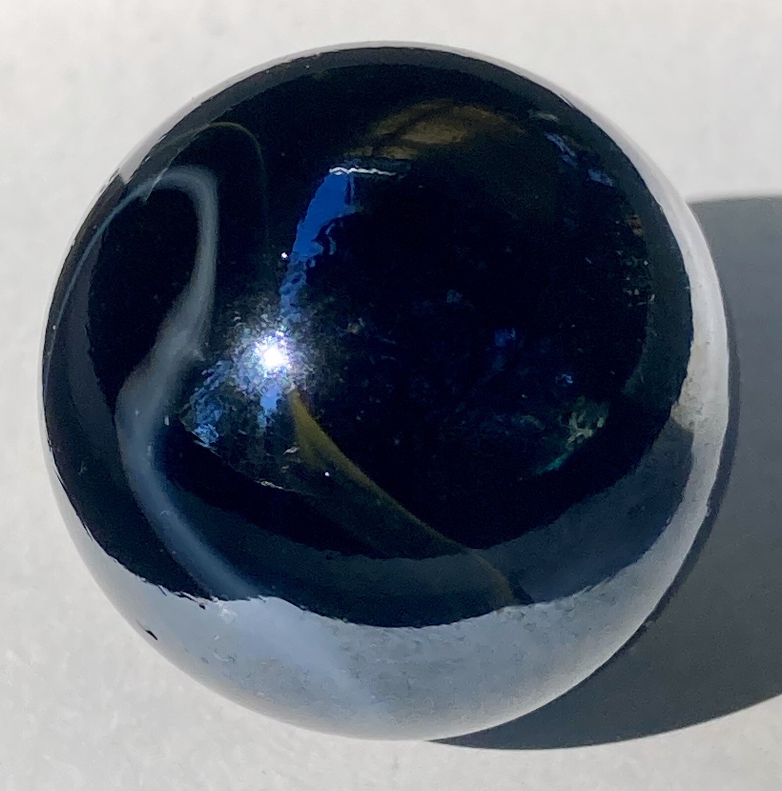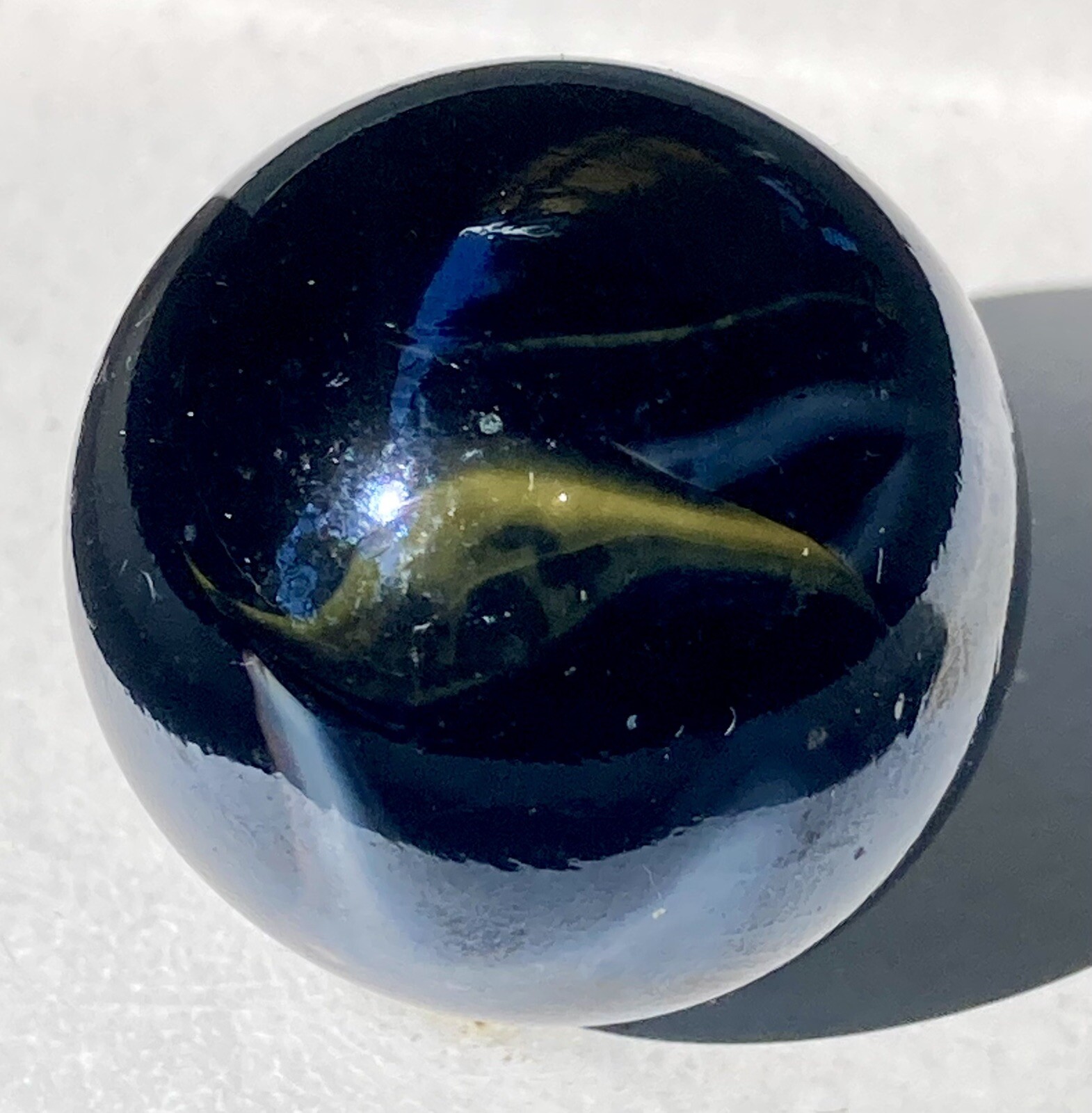 Vintage Estate Large Shooter Marble Dark Iridescent Glass W/Yellow White Swirls