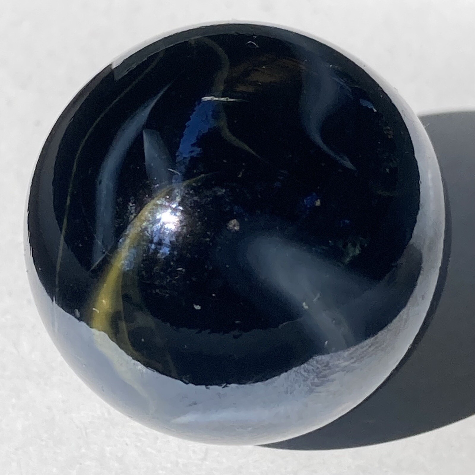 как выглядит Vintage Estate Large Shooter Marble Dark Iridescent Glass W/Yellow White Swirls фото
