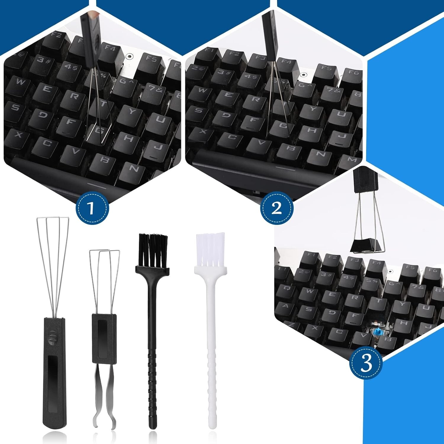 как выглядит 4 Pack Keycap Puller Kit Keyboard Key Remover Switch Puller with Cleaning Brush фото