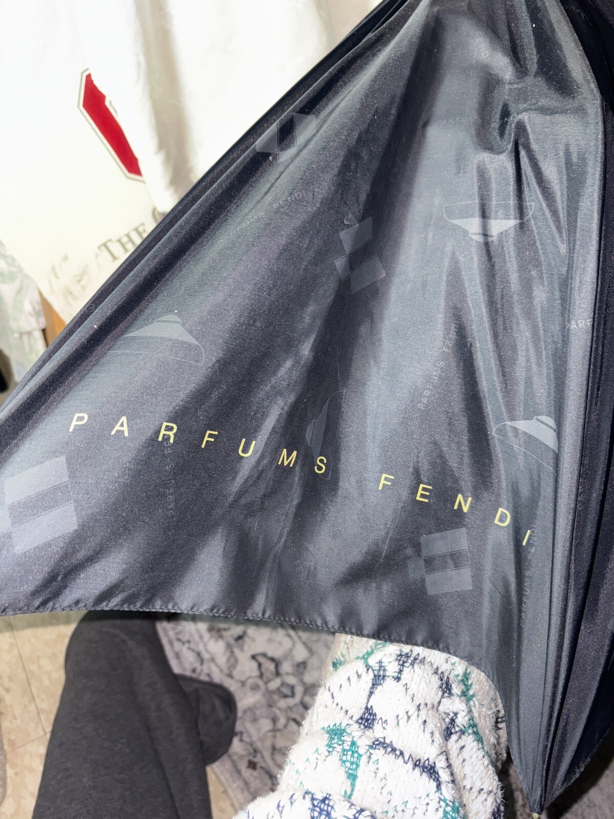 как выглядит Vintage Fendi Parfums Umbrella Italian Men Parasol Black Designer Perfume фото