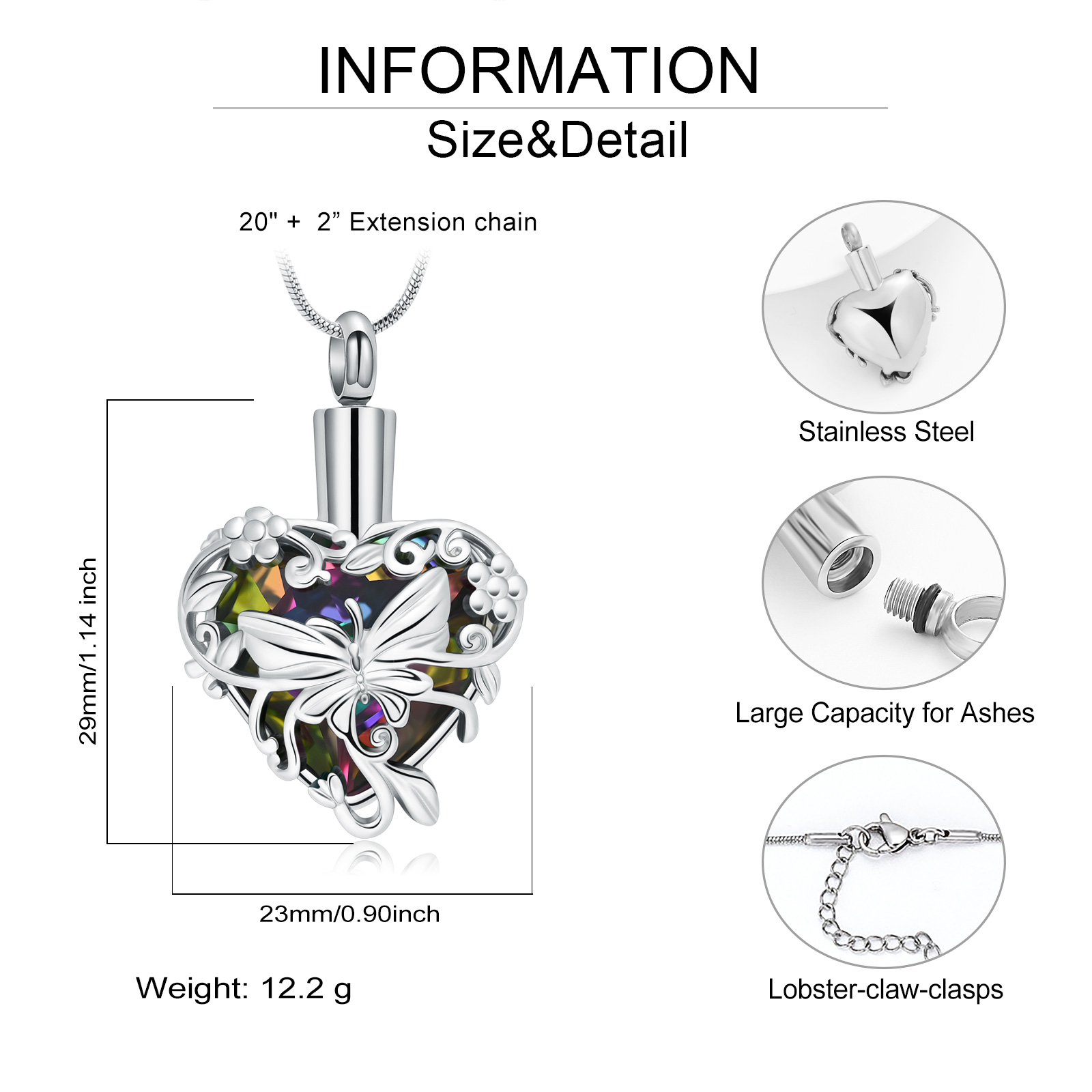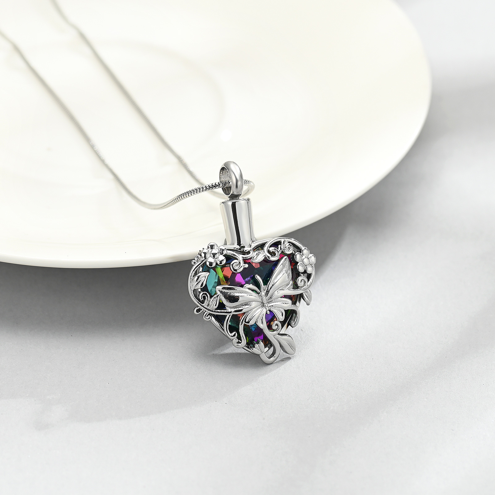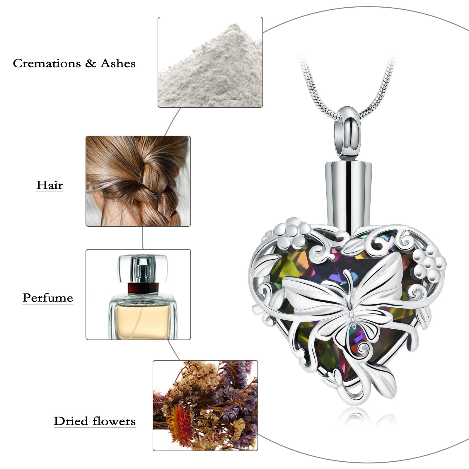 Butterfly Urn Necklace for Ashes Crystal Cremation Keepsake Memorial Urn Pendant