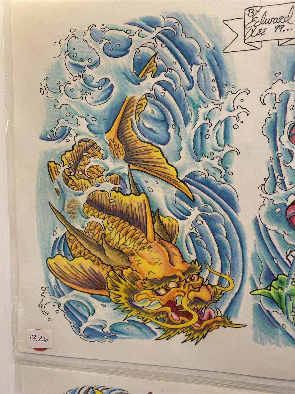 как выглядит 2 Vintage 99 Wall Art Tattoo Flash Sheets By Edward Lee Dragon Lotus Eye Skull фото