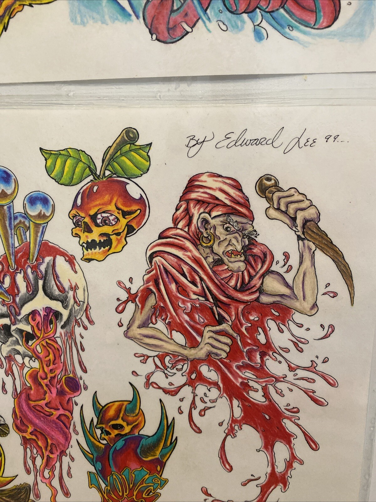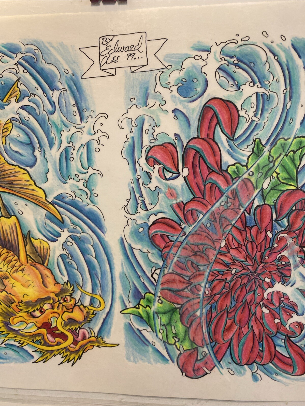 2 Vintage 99 Wall Art Tattoo Flash Sheets By Edward Lee Dragon Lotus Eye Skull