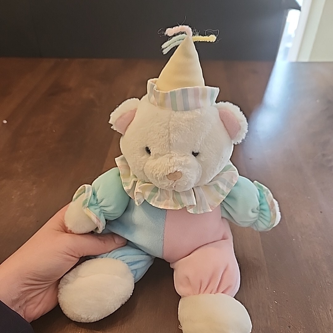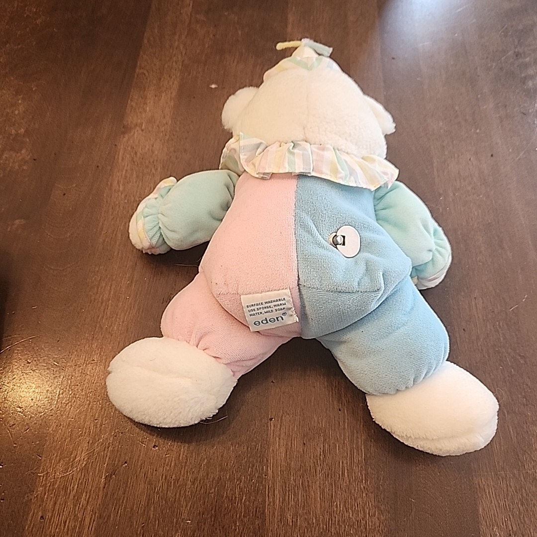 как выглядит Eden Teddy Bear Clown Pastel Musical Wind Up Plush Toy Plays It