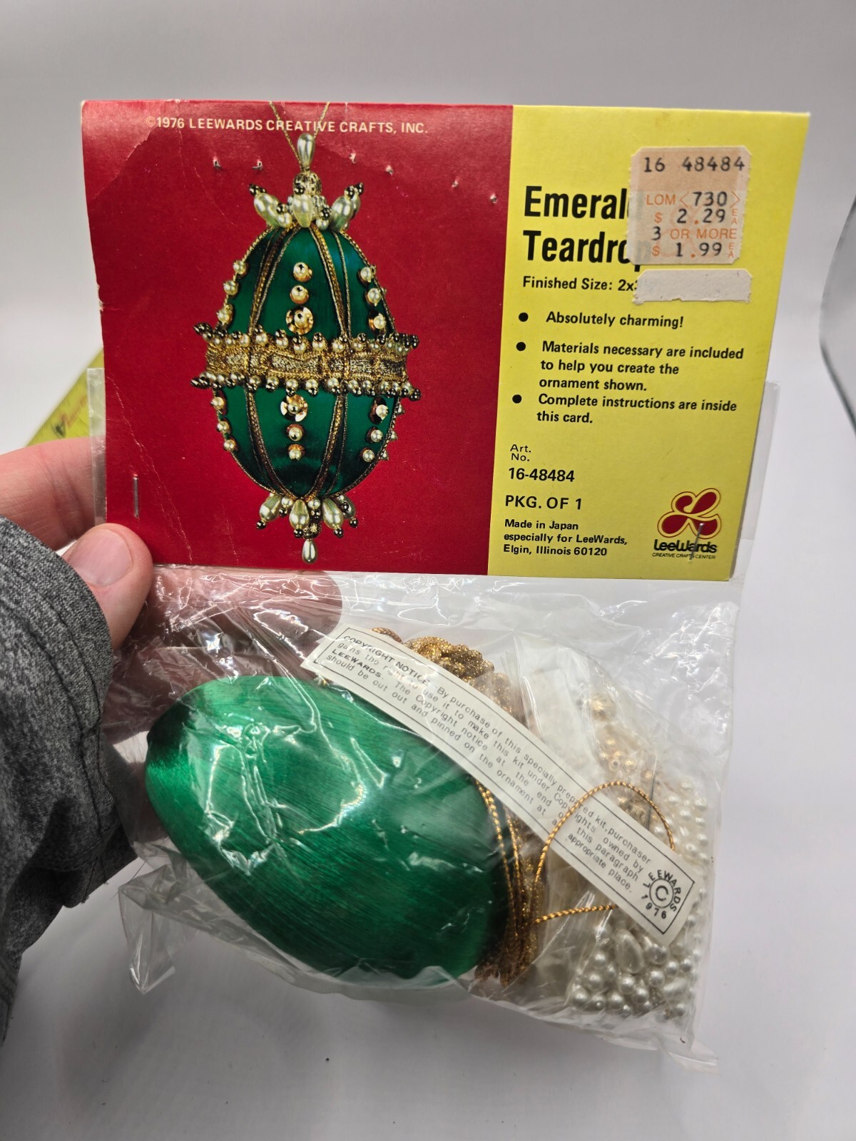 как выглядит RARE LeeWards EMERALD TEARDROP Vtg Sequin Bead Pins Christmas DIY Ornament Kit фото