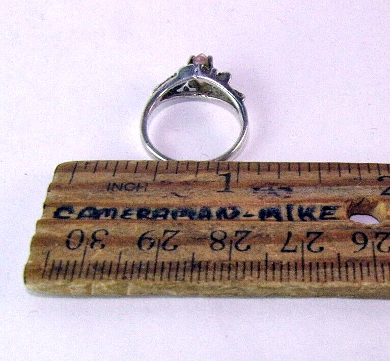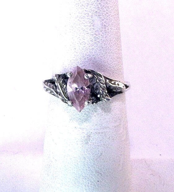 Pink CZ Ring Marquis Solitaire Vtg Sterling Silver Small Size 4.75 Band