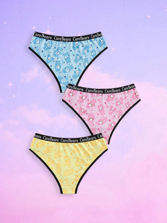 Women's Kawaii Licensed Cartoon Care Bears Bikini Panties - Pack of 3