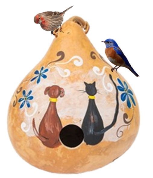 CAT DOG BEST FRIENDS BIRDHOUSE - Amish Hand Painted Gourd
