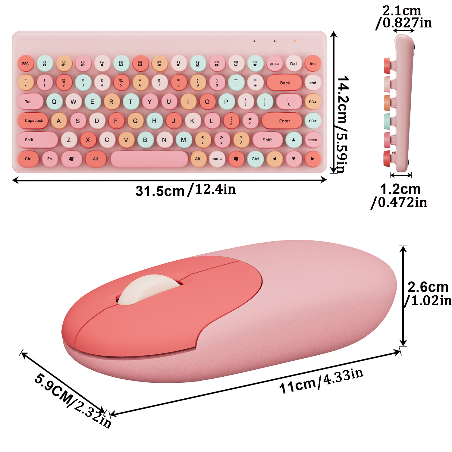 Pink 2.4G 86-keys Wireless Keyboard Mouse Combo For Windows PC Mac Universal