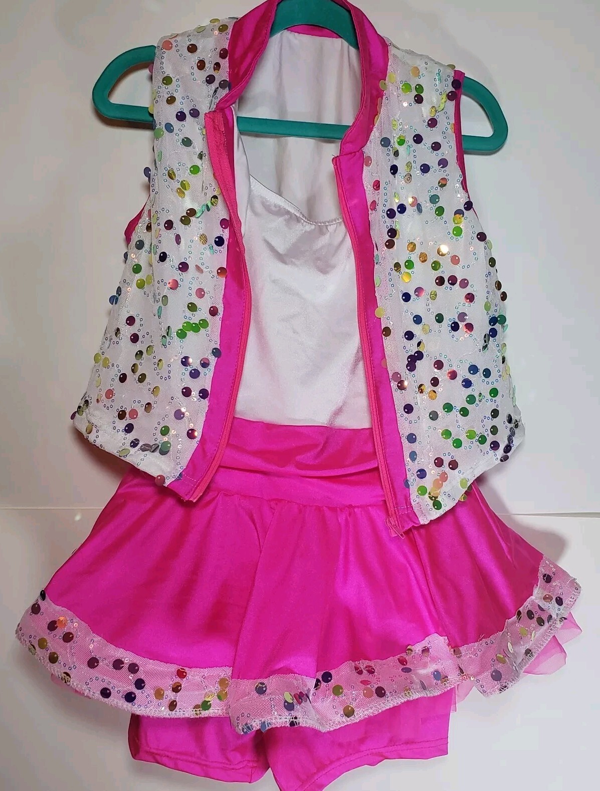 Weissman Girl's Dance Costume White and Pink Sparkly Size LM
