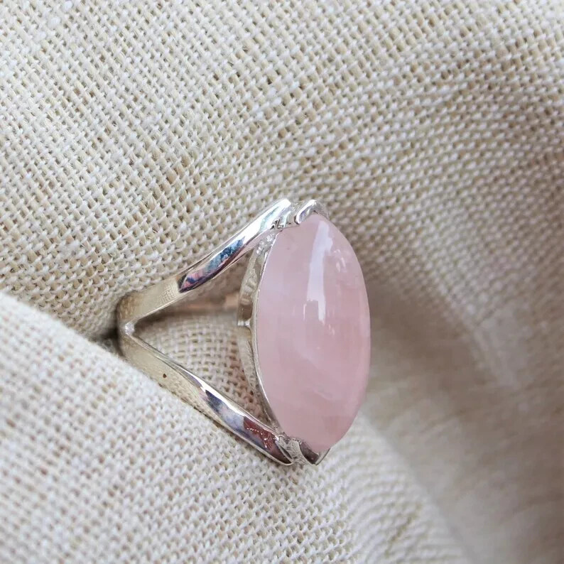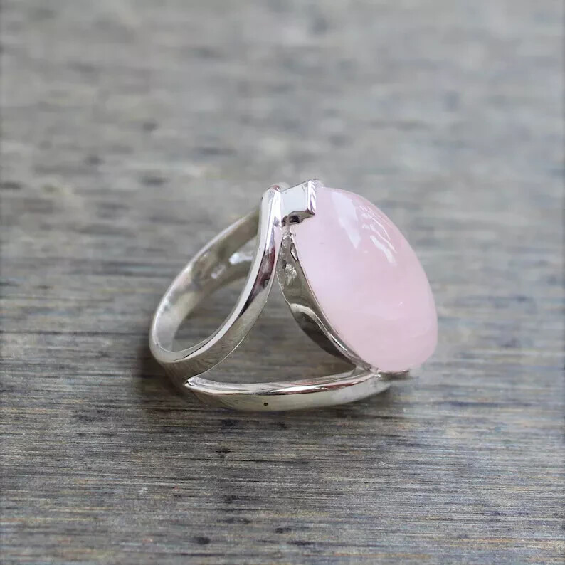 как выглядит Pink Rose Quartz Solid 925 Sterling Silver Handmade Promise Ring All Size R413 фото