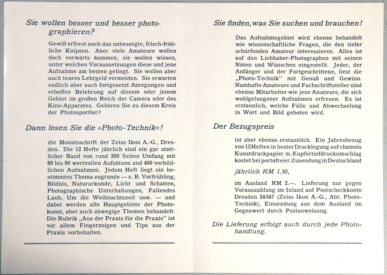 1929 ZEISS Ikon German Language Ad for their Photo-Technik Magazine