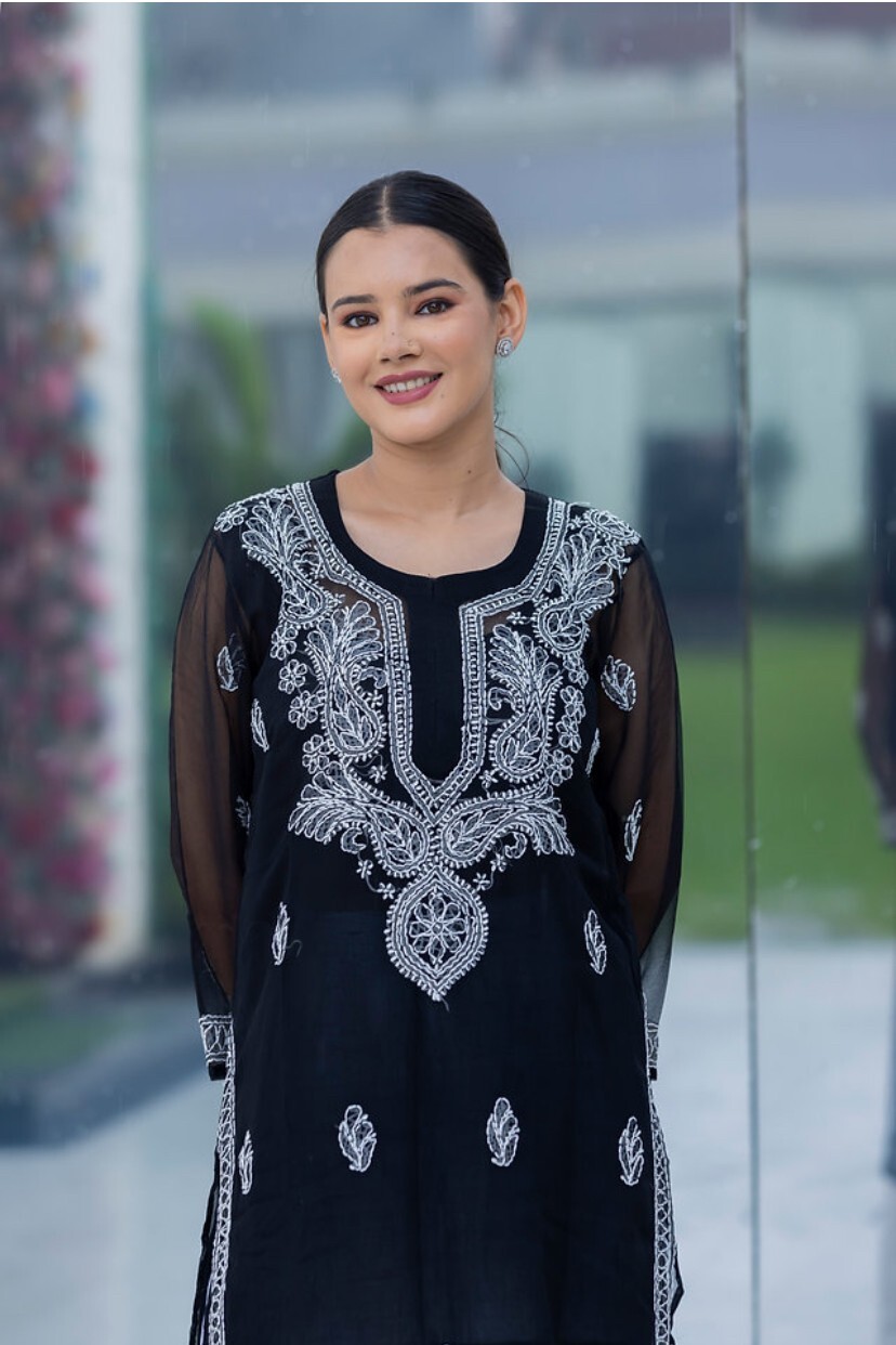 kurti Chikankari for women black kurti soft georgette fabric kurti with inner