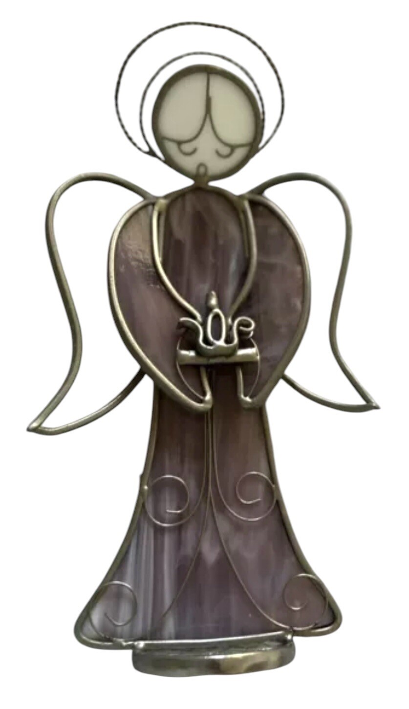 Pink Stained Glass Praying Angel Free Standing Leaded Frame 10 Inches