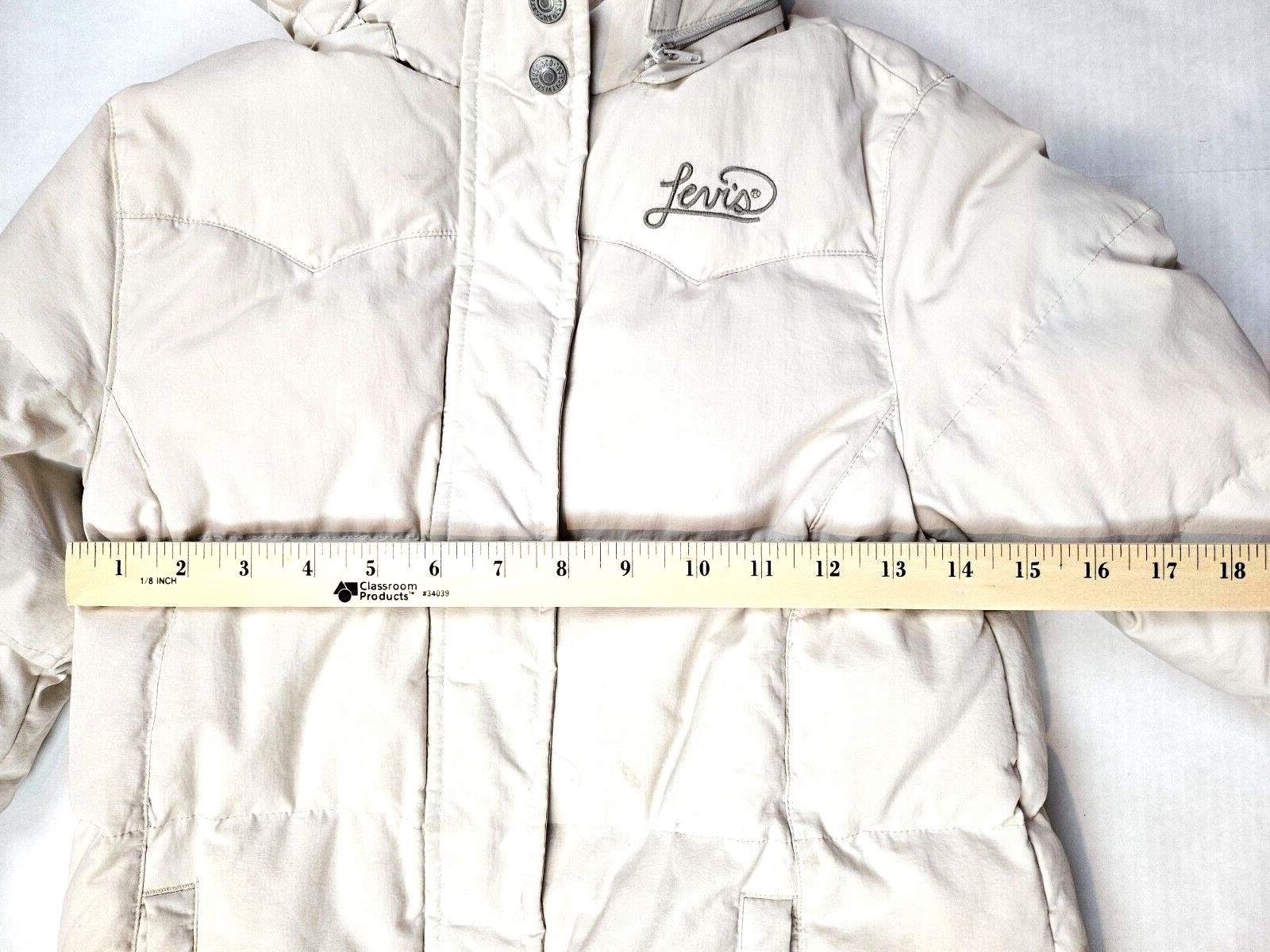 как выглядит LEVIS puffer jacket girls medium beige 10-12 Y detachable hood фото