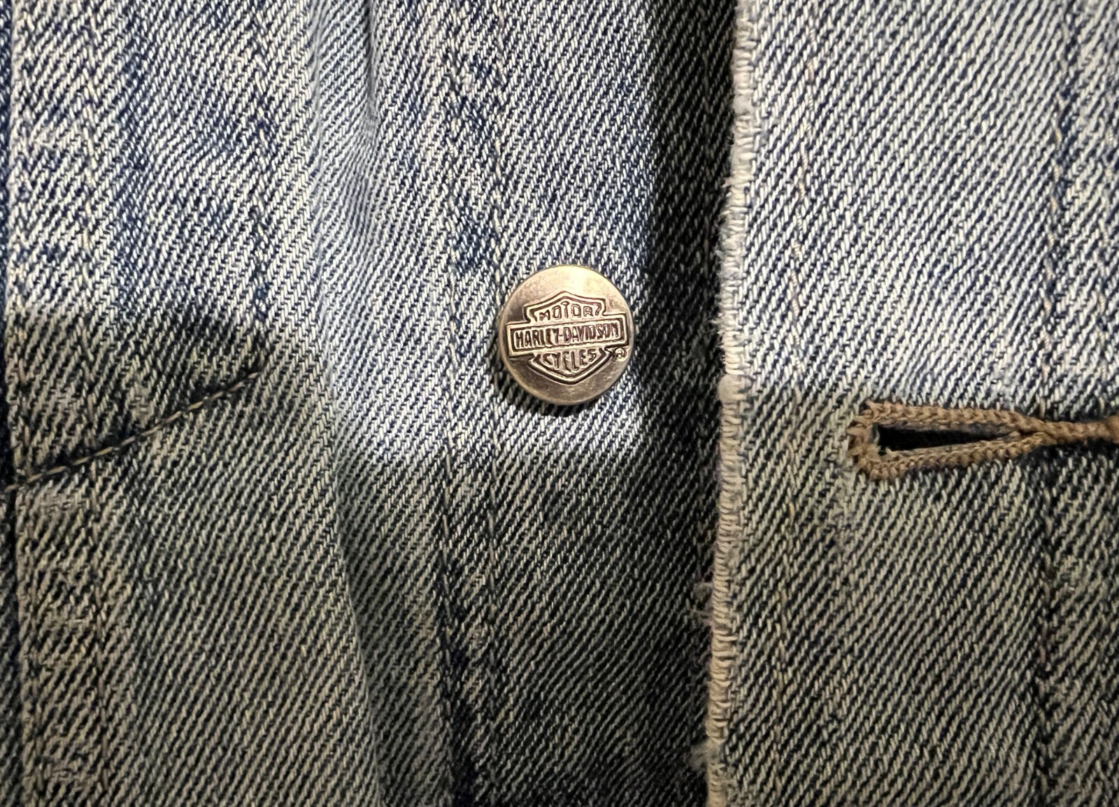 как выглядит Pre owned Distressed Harley Davidson Denim Jean Vest Button Front Size Large фото