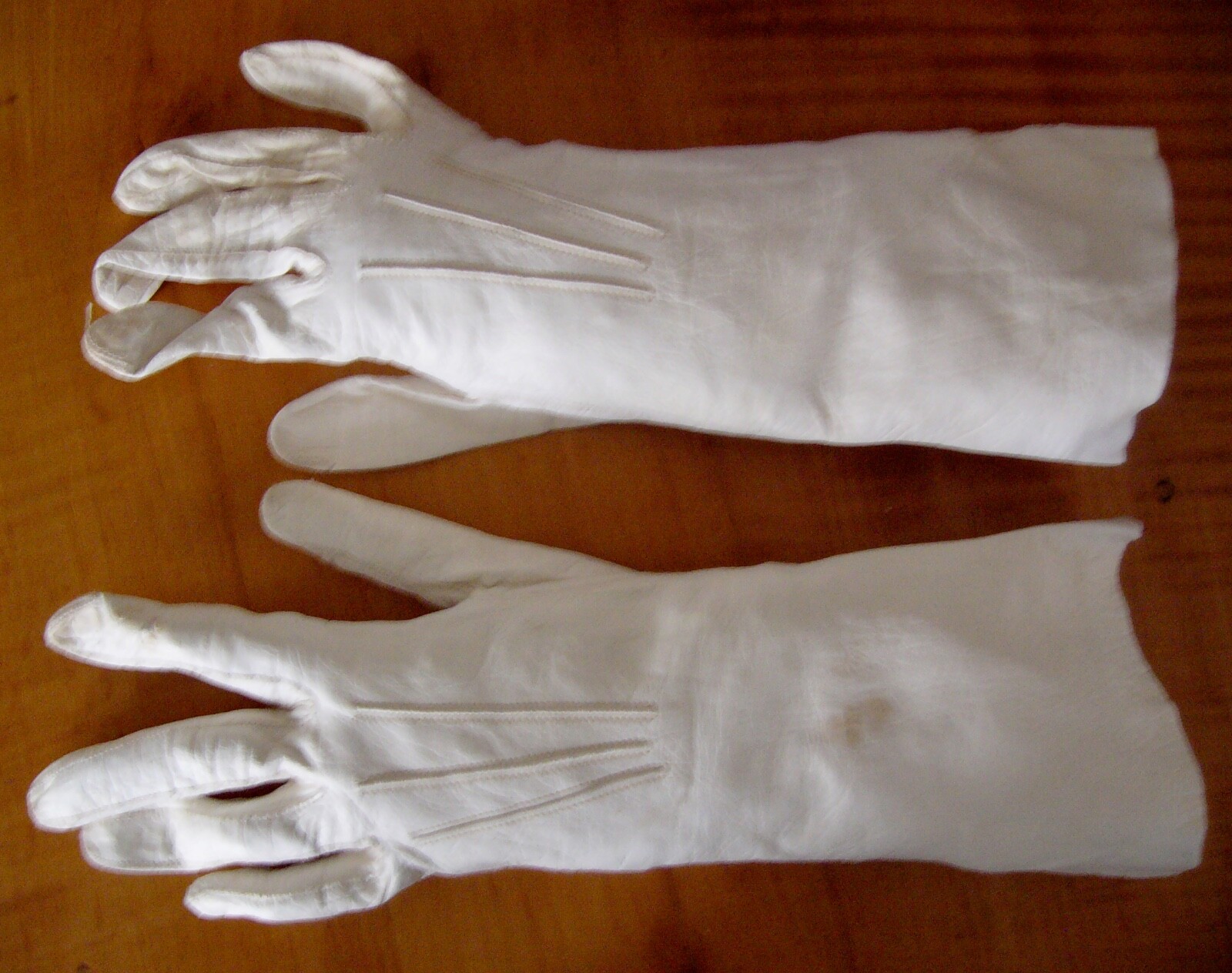 как выглядит Vtg White Kid Leather Over Wrist Gloves Size 6 Wedding Washable Soft фото