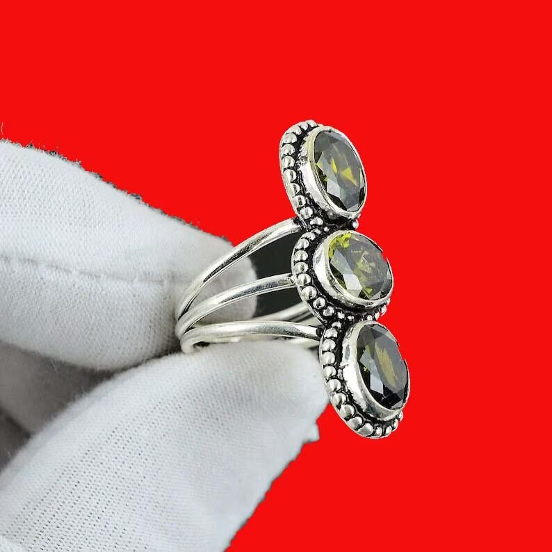 как выглядит Peridot Solid 925 Sterling Silver Beautiful Statement Lovely Ring, All Size M998 фото