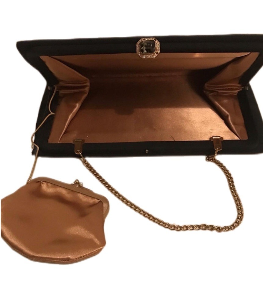как выглядит Vintage After Five Black Satin Clutch Evening Handbag Coin Purse Inside 1960s фото