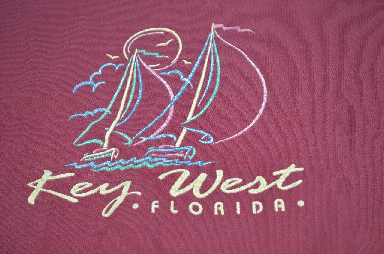 VTG 80s 90s Key West Florida Miami Pullover Sweatshirt Red Maroon Large Sailboat