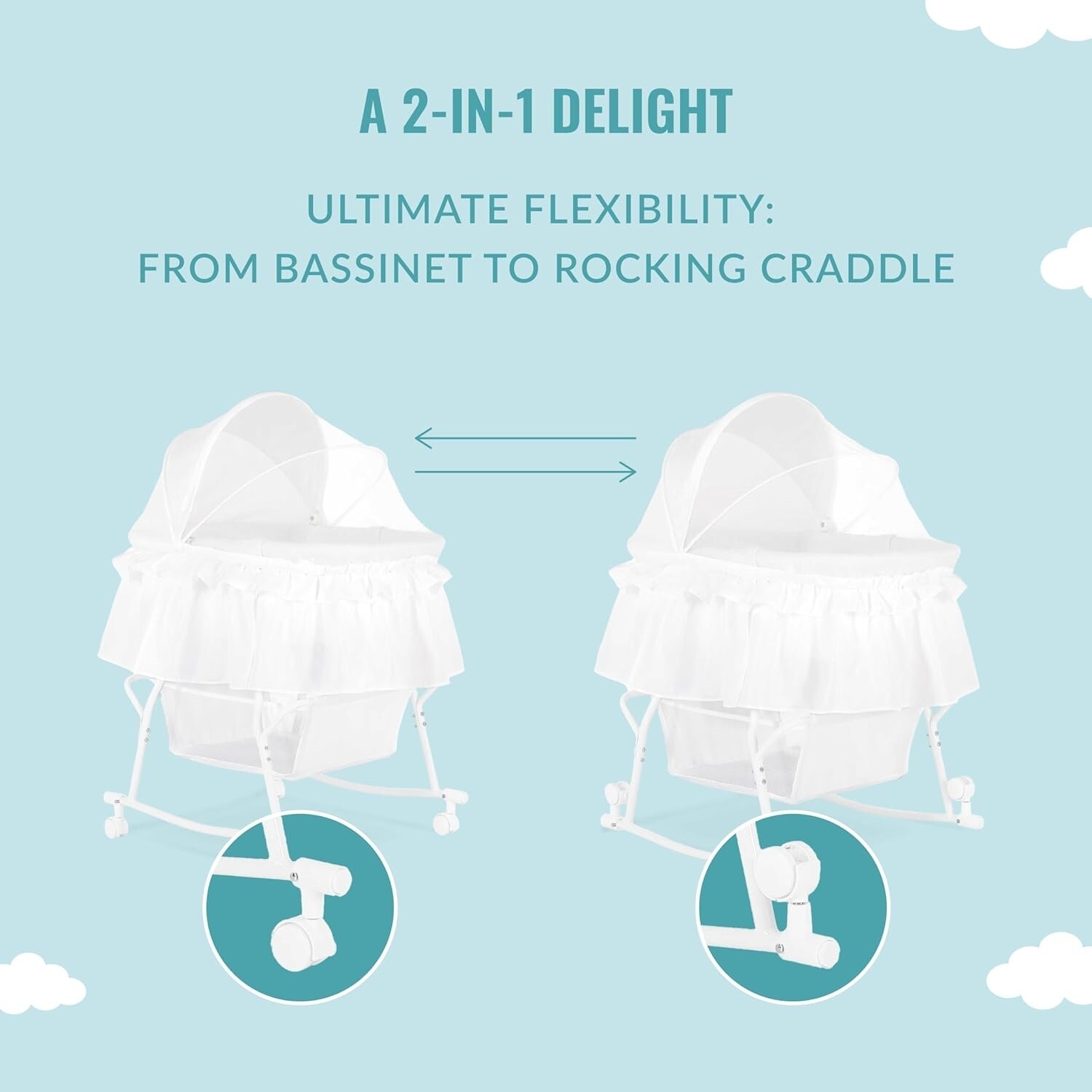 Особенности: Bassinet & Cradle, Storage Basket, Adjustable and Removable Canopy