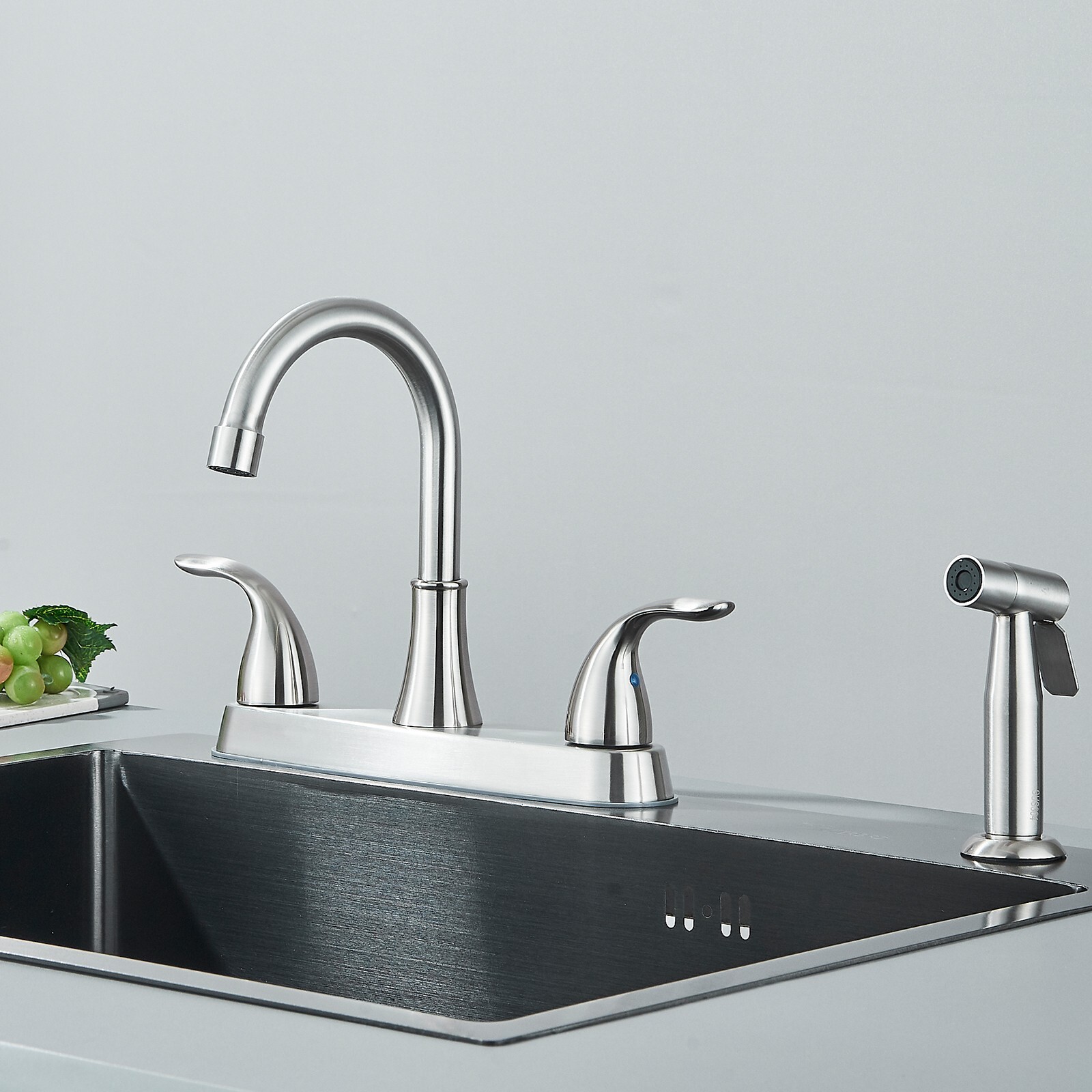 Brushed Nickel Kitchen Faucet 2Handle 4 Hole Sink Mixer Faucet with Side Sprayer