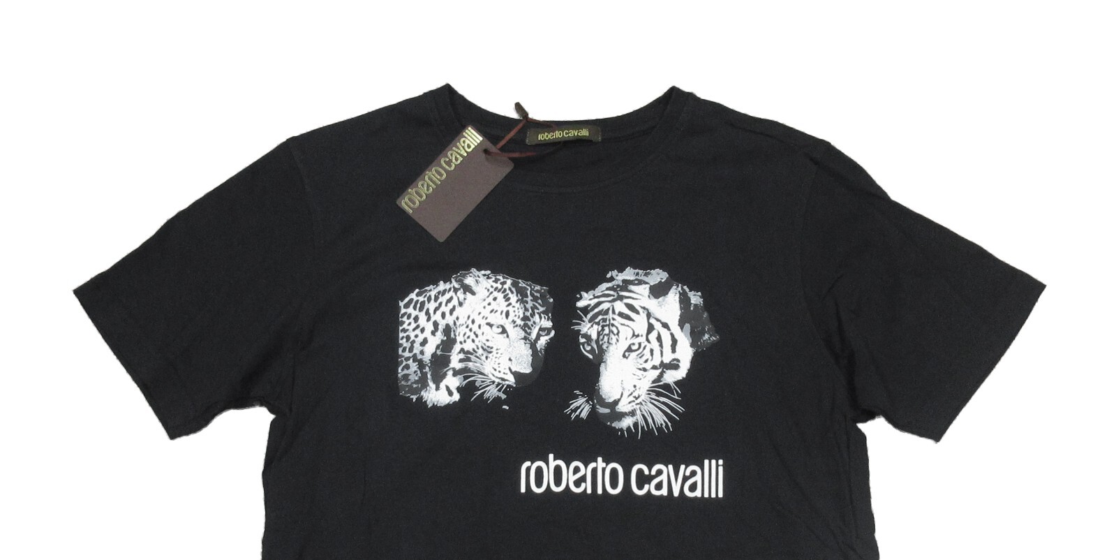 Roberto Cavalli Men's Black Tiger Graphic Print Cotton Crew-Neck T-Shirt