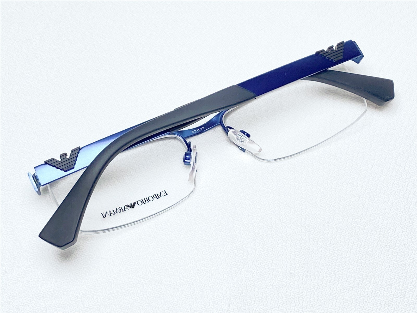 NEW Emporio Armani EA1014 3076 Men's Matte Blue Half Rim Eyeglasses Frames 53/17