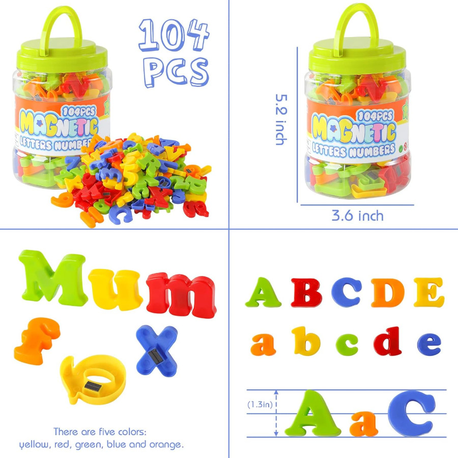 104 PCS Magnetic Letters Numbers Alphabet ABC 123 Fridge Magnets Plastic Edu NEW