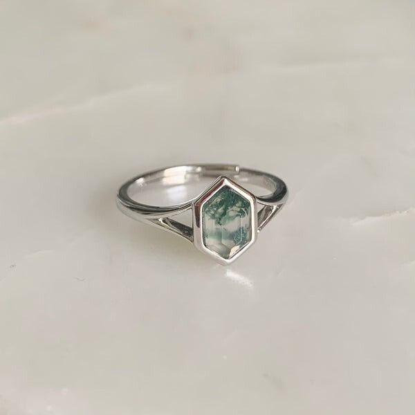 Natural Moss Agate Ring 925 Sterling Silver Ring Wedding promsie Ring Gift Her