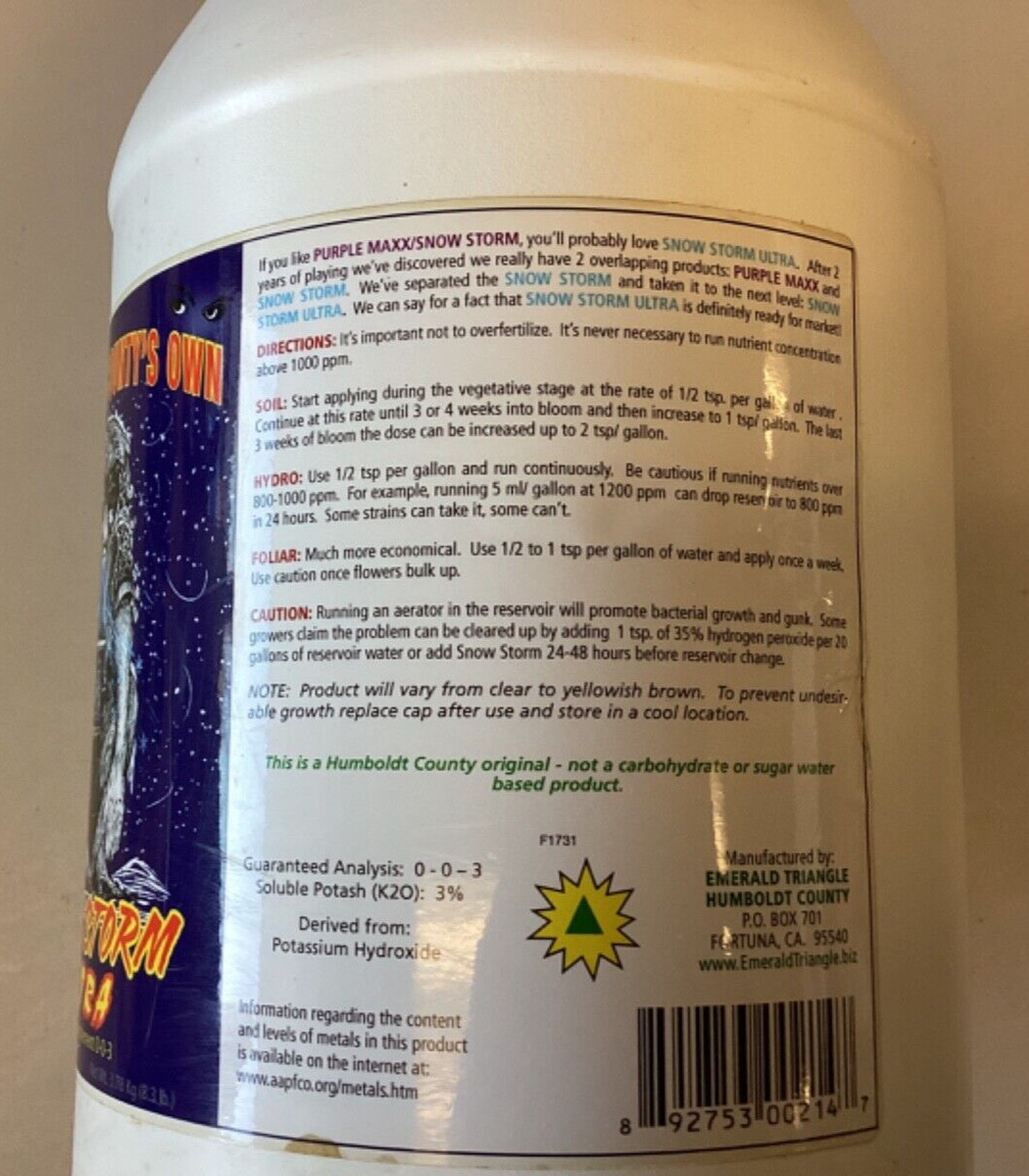 Humboldt County s Own Snow Storm Ultra/Potassium Supplement/0-0-3/Gallon
