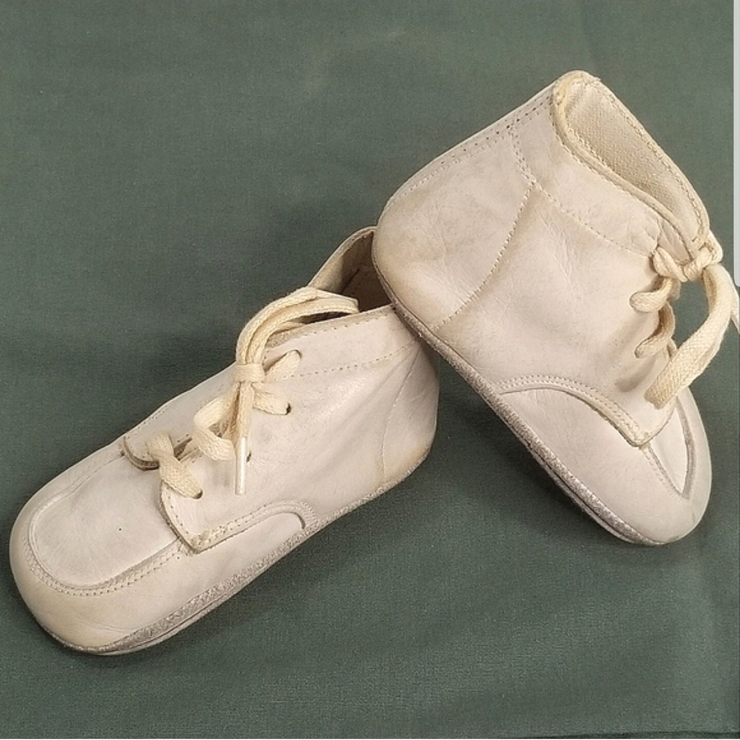 как выглядит Vintage Mid-Century Laced Leather Baby Sneakers/Shoes- White/Off-White фото