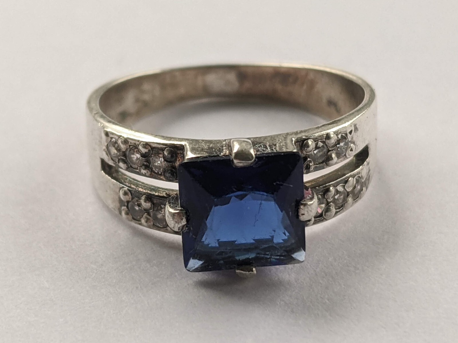 Vintage ring sterling silver 925 Size 6 Weight 2.73 g. Blue stone.