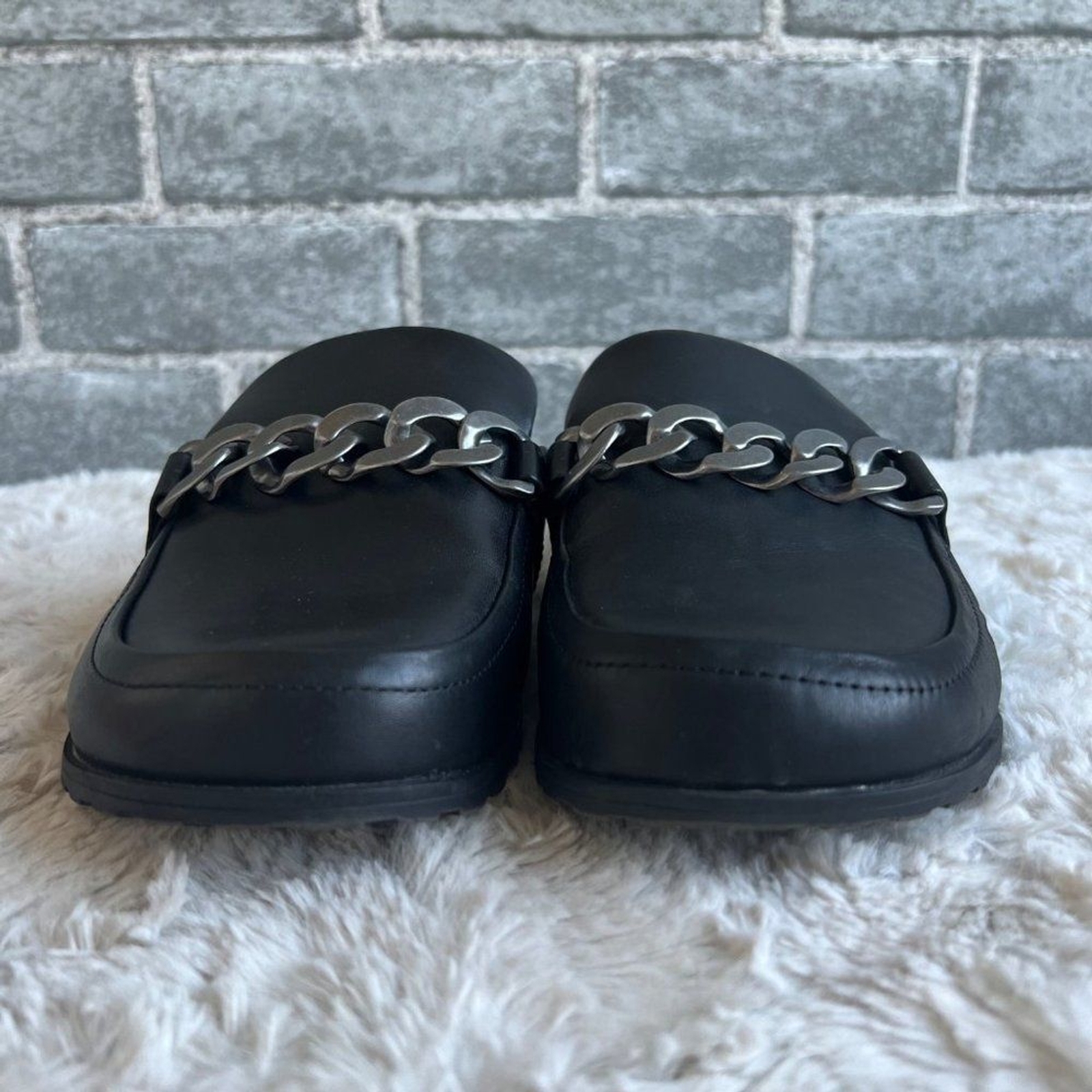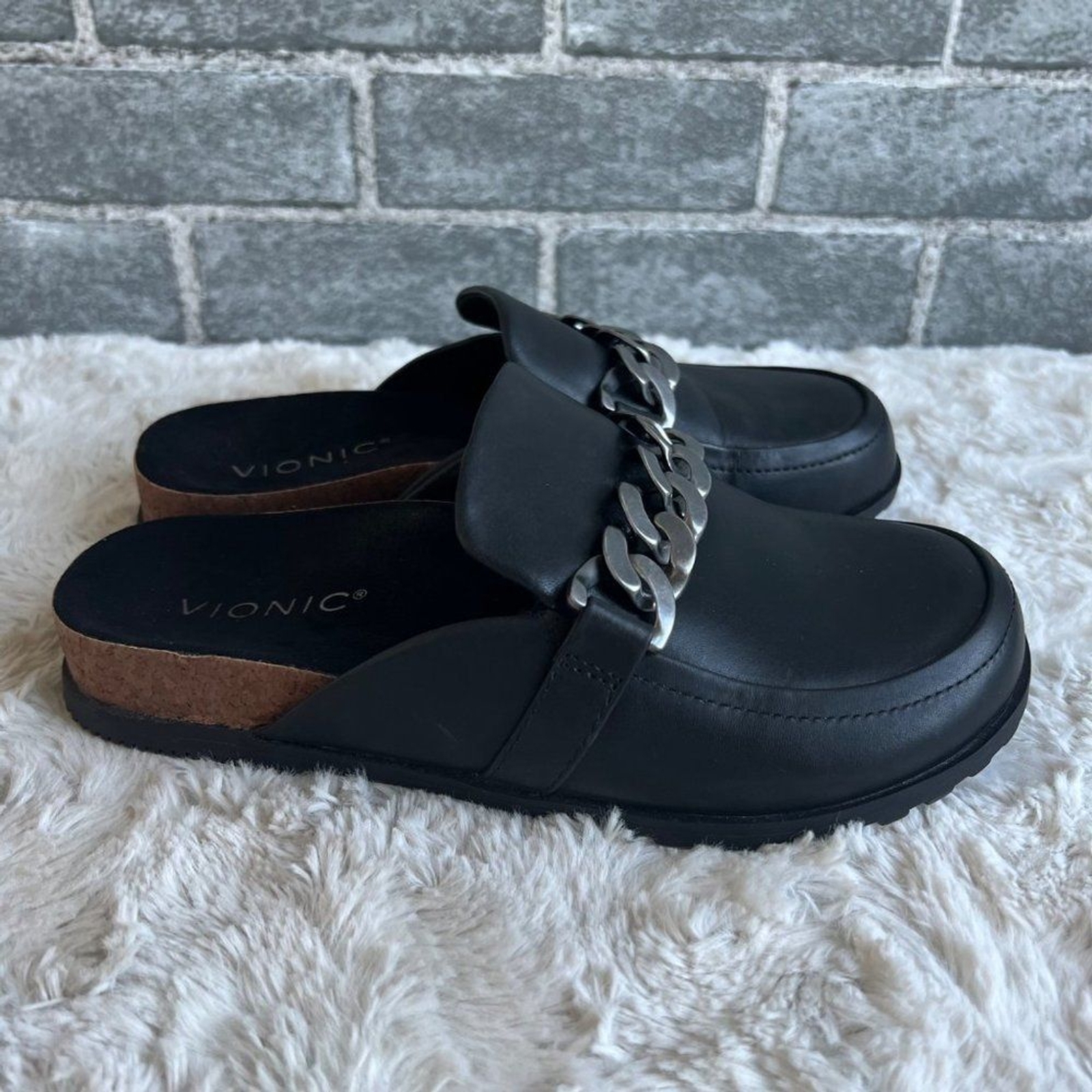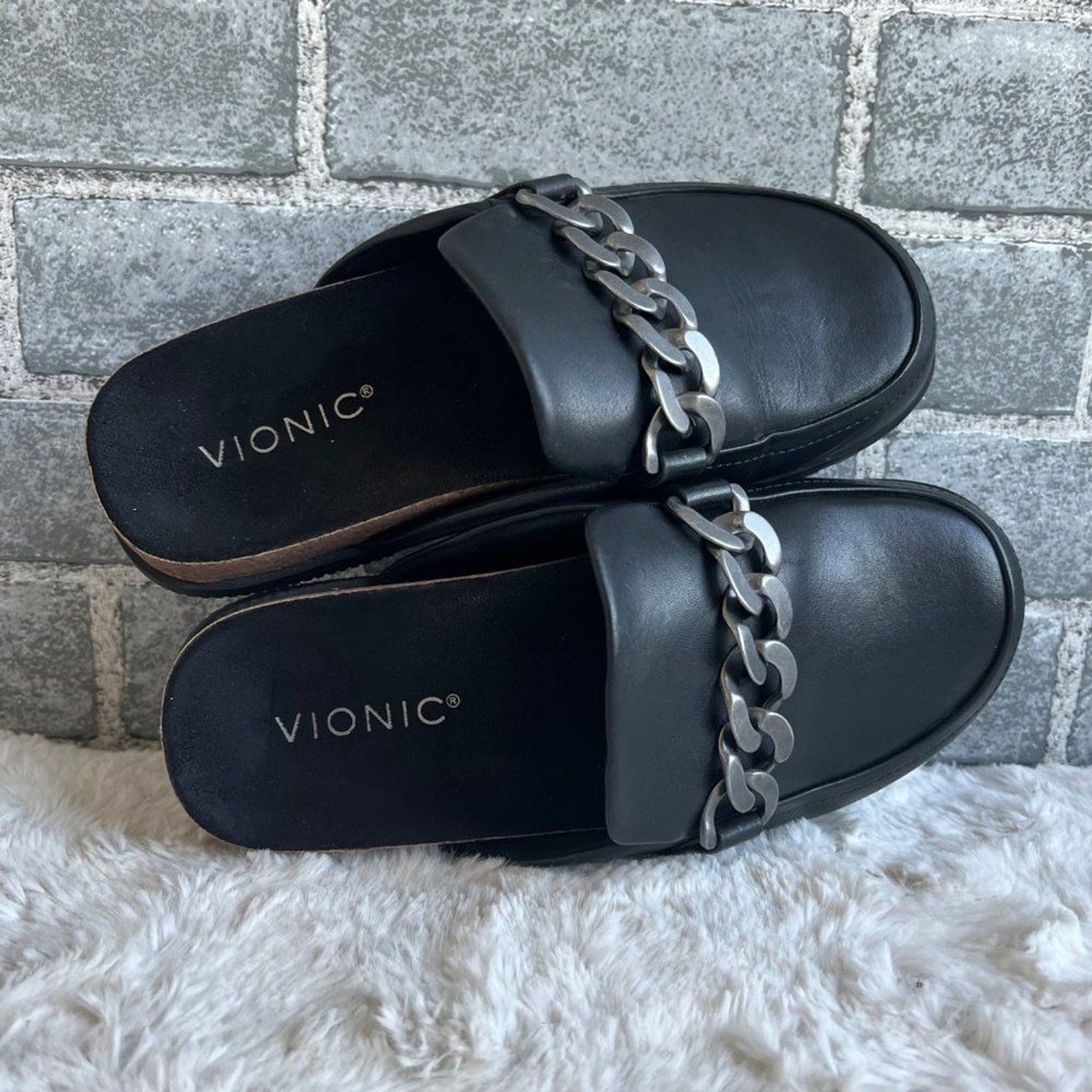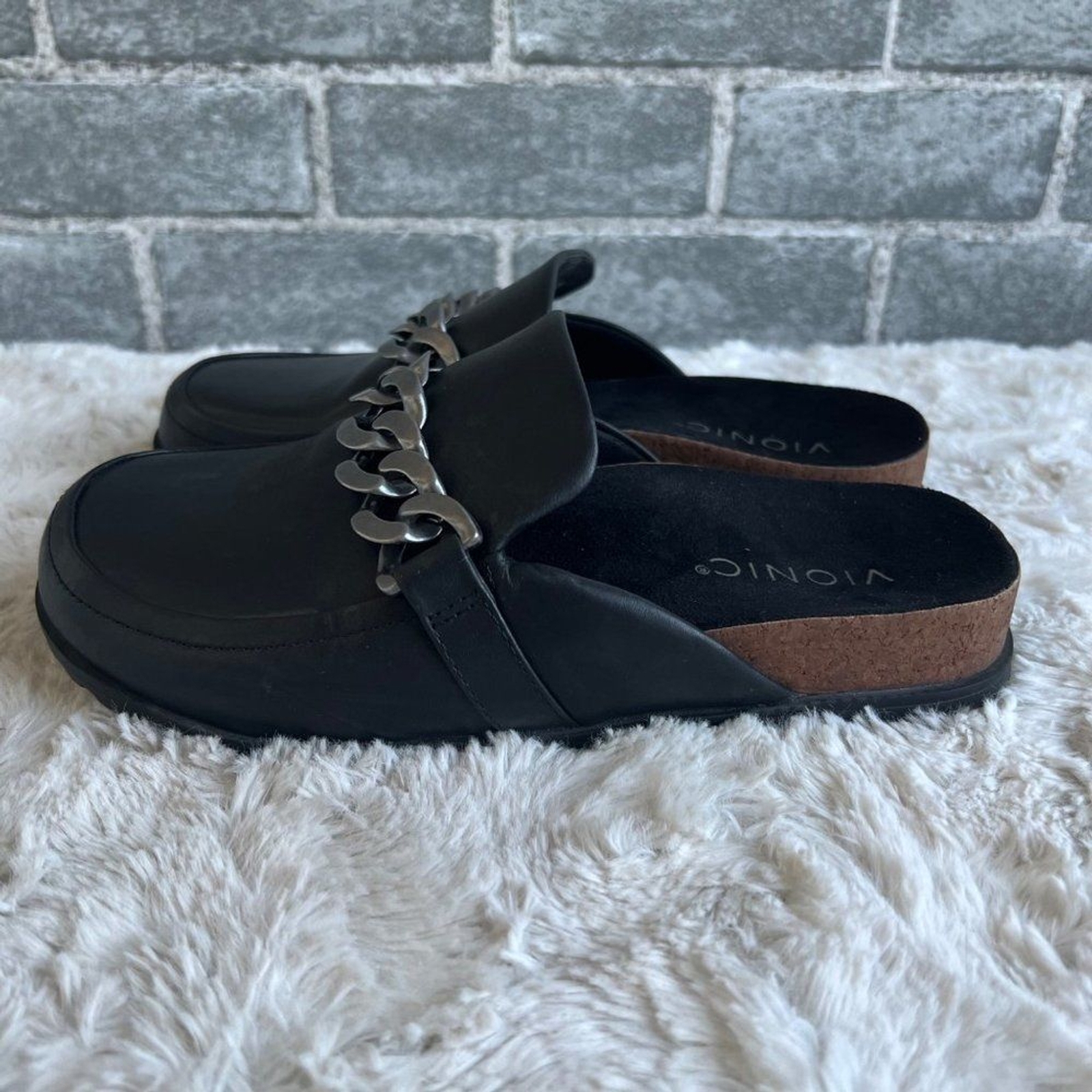 как выглядит Vionic Black Leather Georgie Chain Mules Size 6 фото