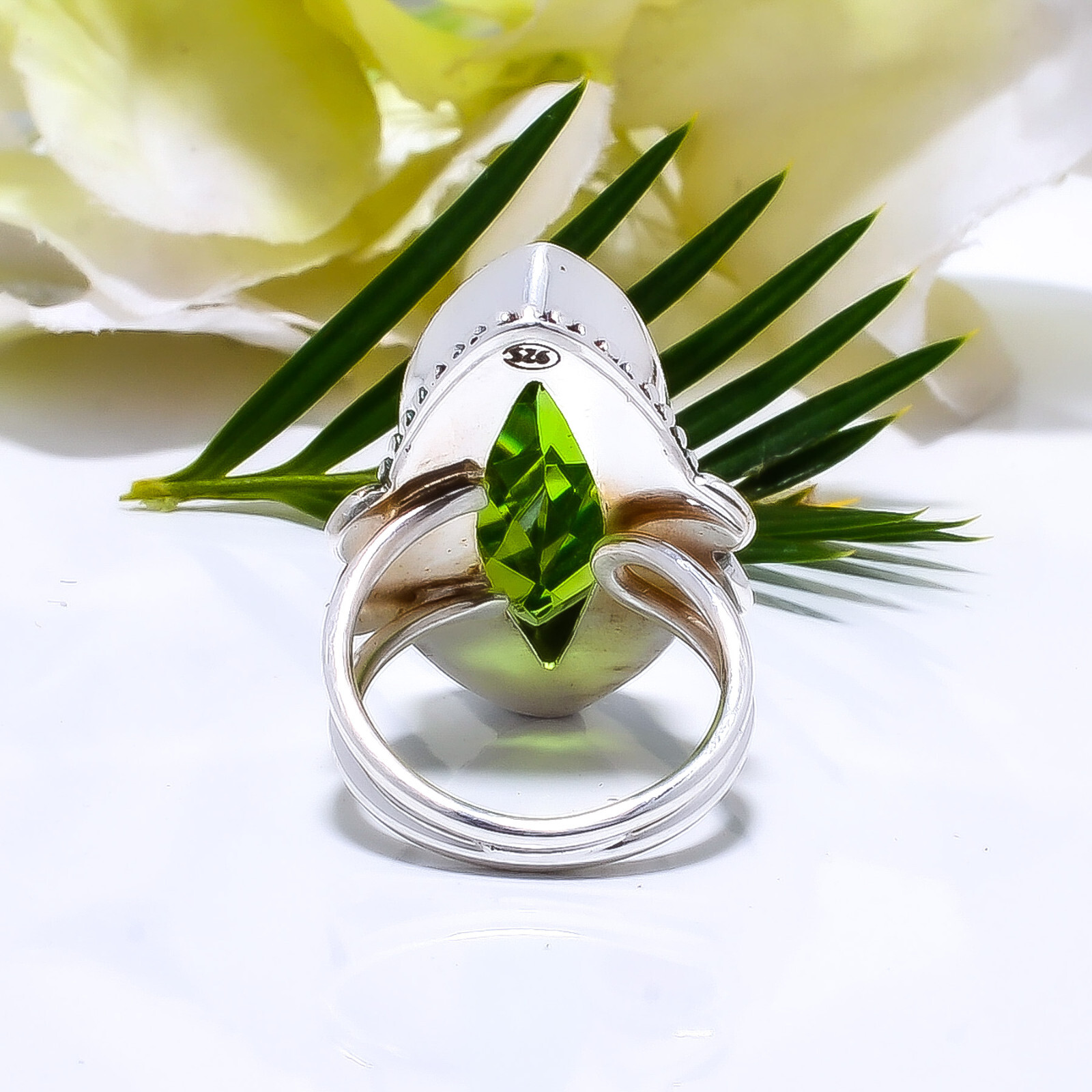 как выглядит Green Peridot Gemstone 925 Sterling Silver Ring Oxidize Jewelry Gift For Friends фото