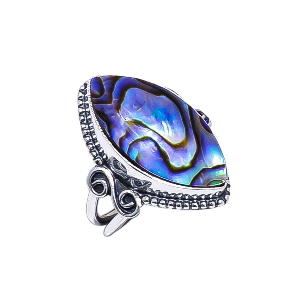 как выглядит Natural Abalone Shell Gemstone 925 Sterling Silver Ring Oxidize Jewelry Gift. фото
