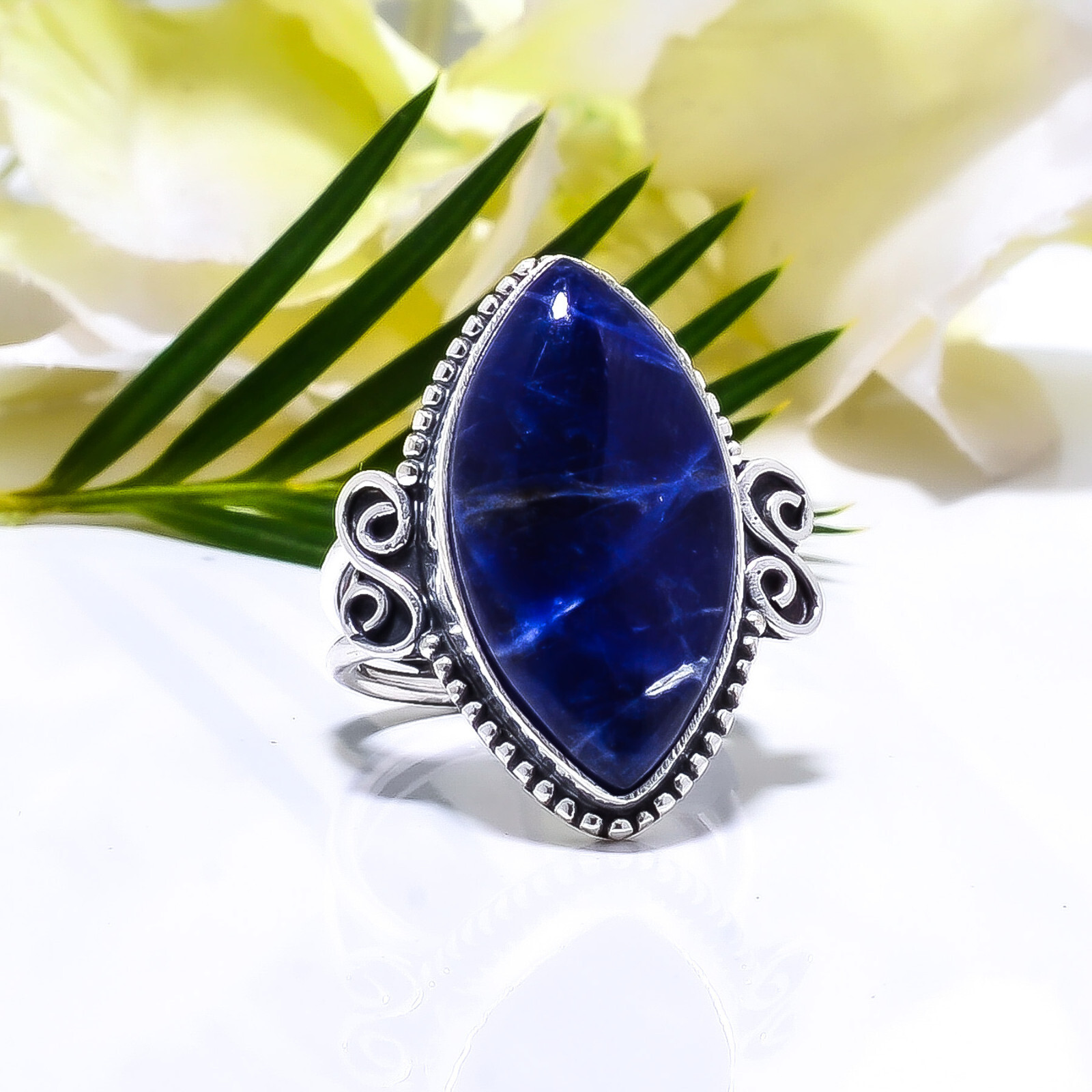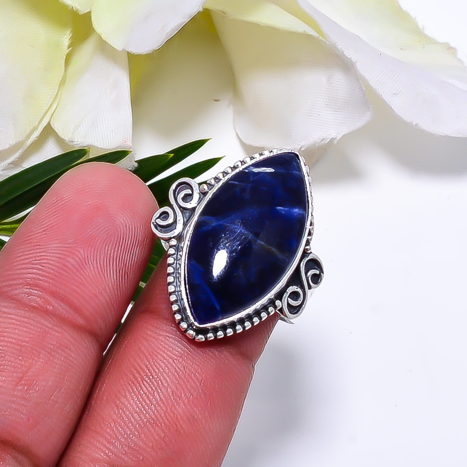 Natural Blue Sodalite Gemstone 925 Sterling Silver Ring Oxidize Jewelry Gift.