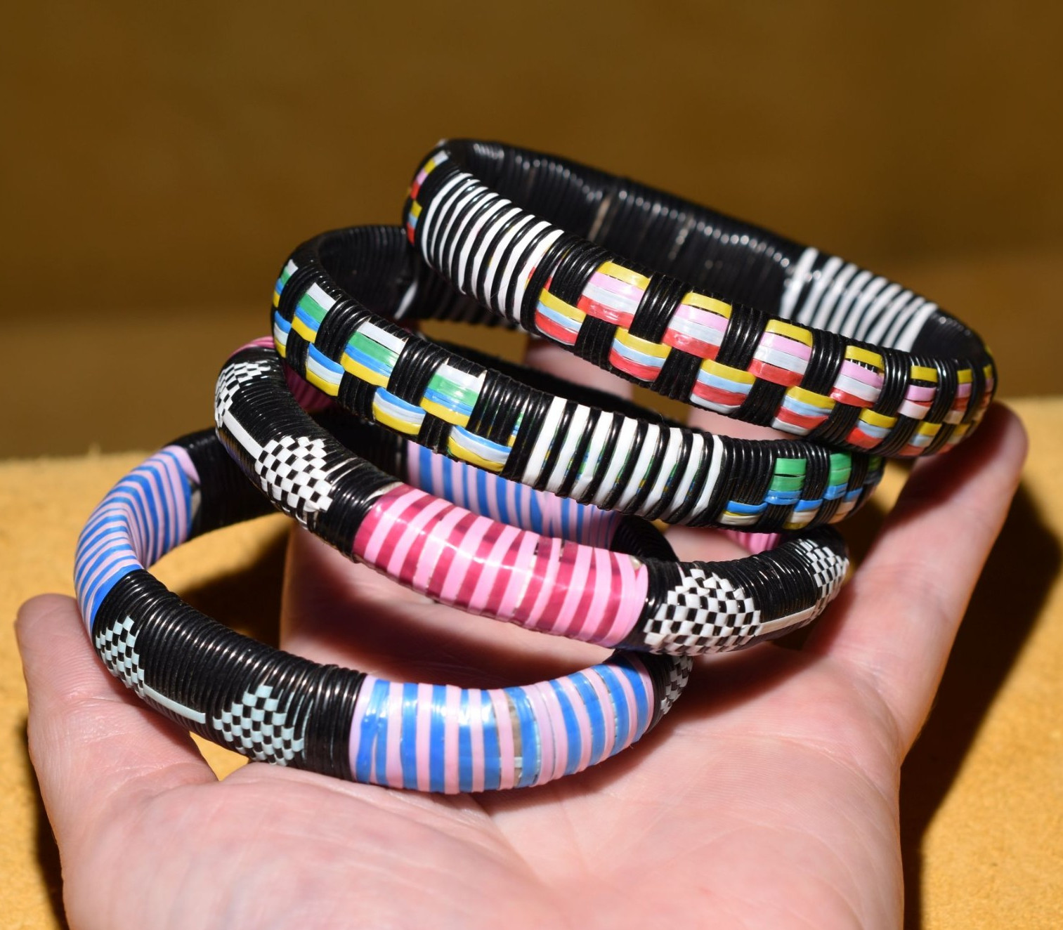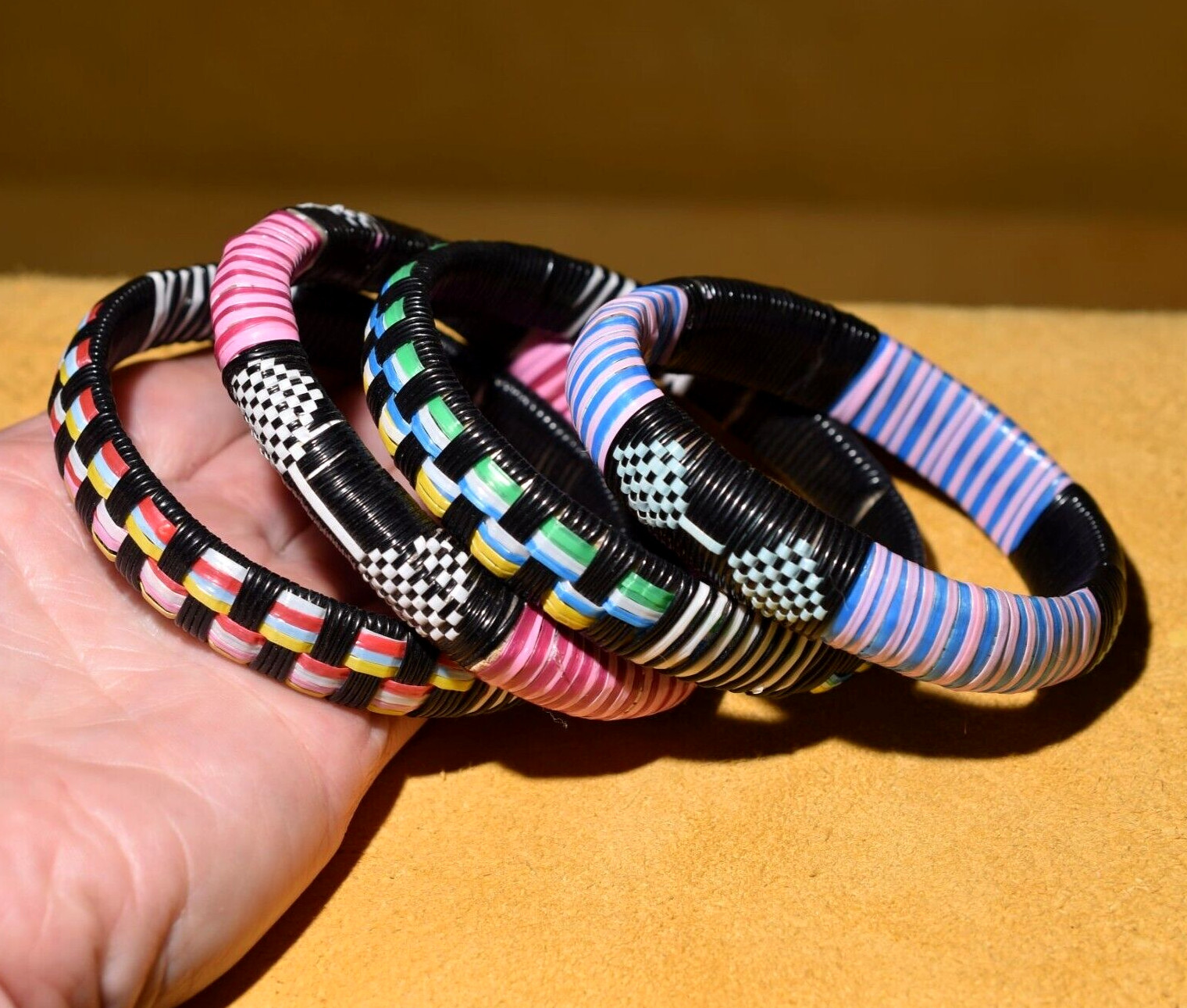 African Tuareg Tribe Colorful Woven Bangle Bracelets Handmade In Mali, Africa
