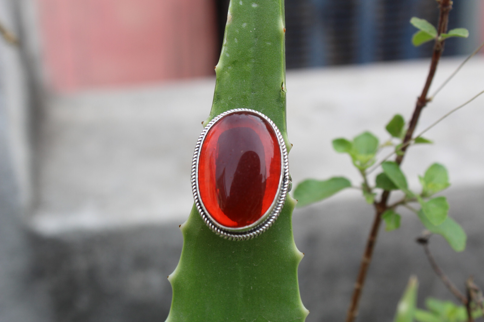 как выглядит Silver Plated Ring For Women Girl With Natural Red Onyx Gemstone P106 фото