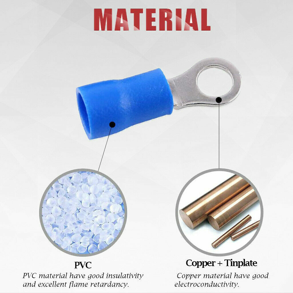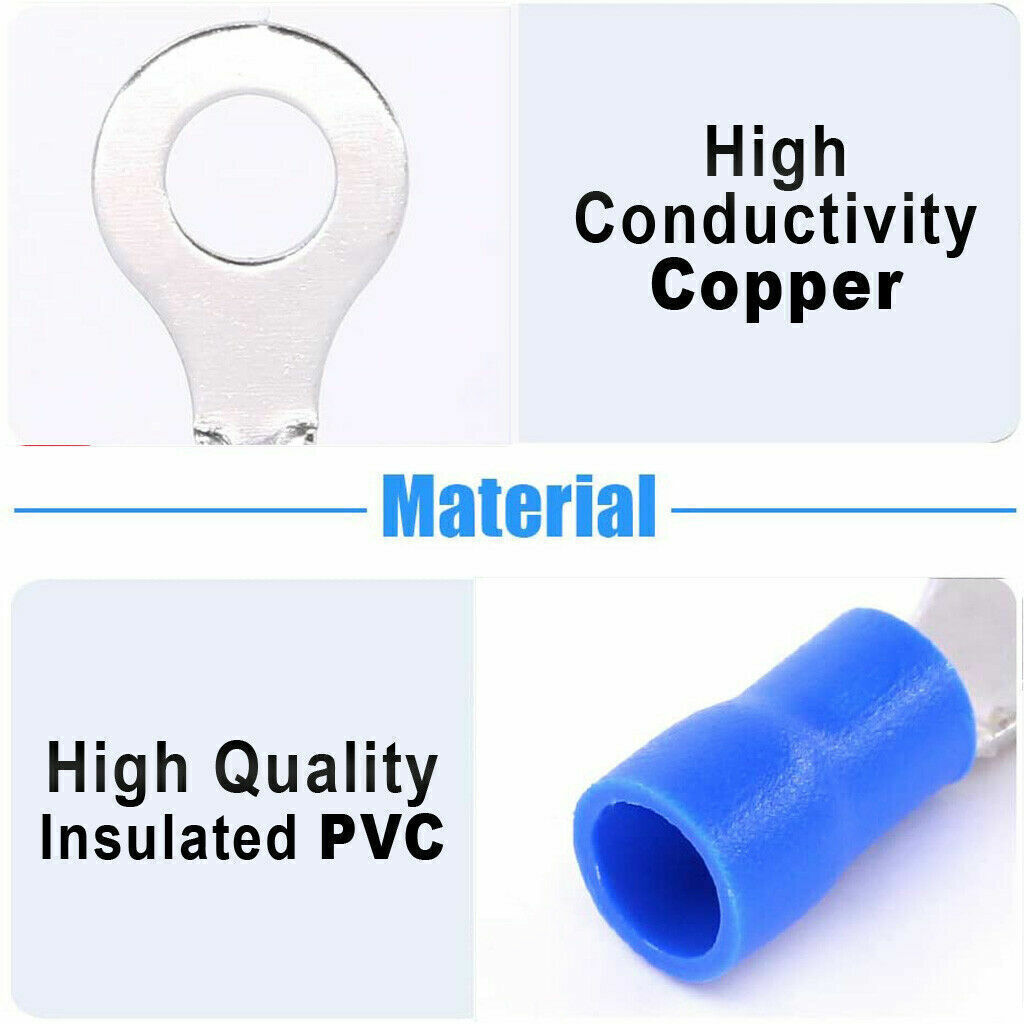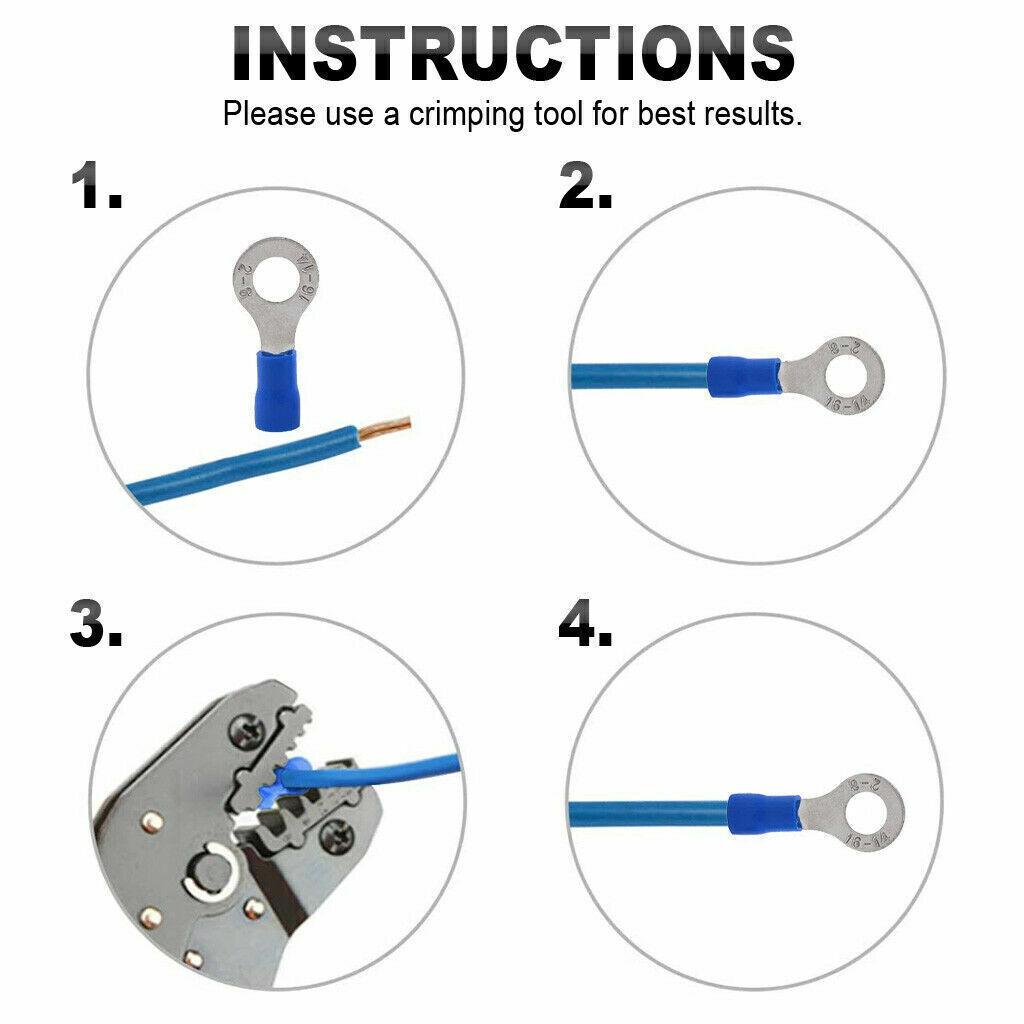 200/100/50PCS Ring Blue 16-14 GA AWG Gauge 5/16 Crimp Wire Connectors Terminal