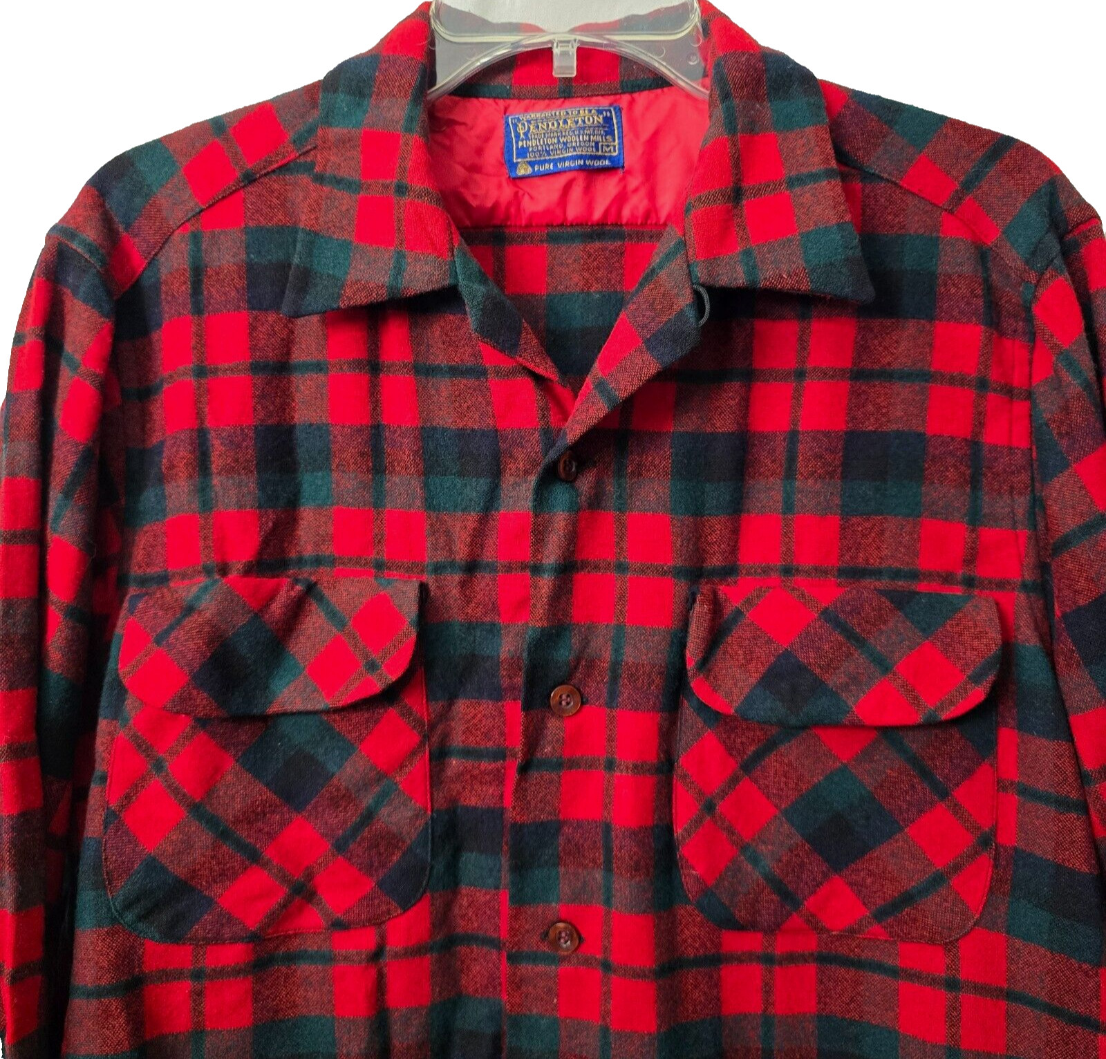 Vintage 60s Pendleton Board Shirt M Men Wool Tartan Robertson Plaid Red Green