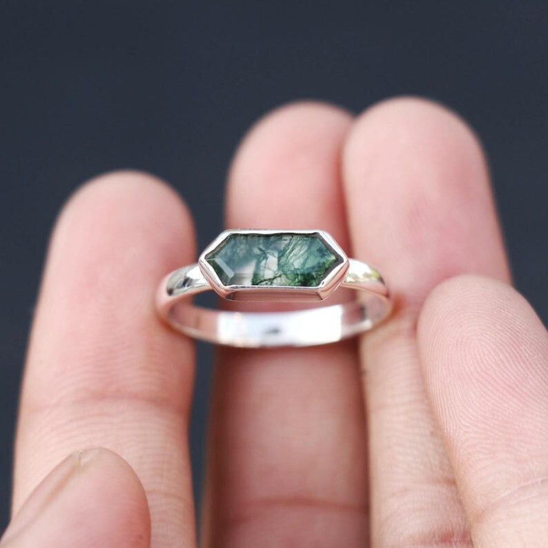 как выглядит Natural Moss Agate Ring 925 Sterling Silver Ring Boho Ring Gift For Her фото