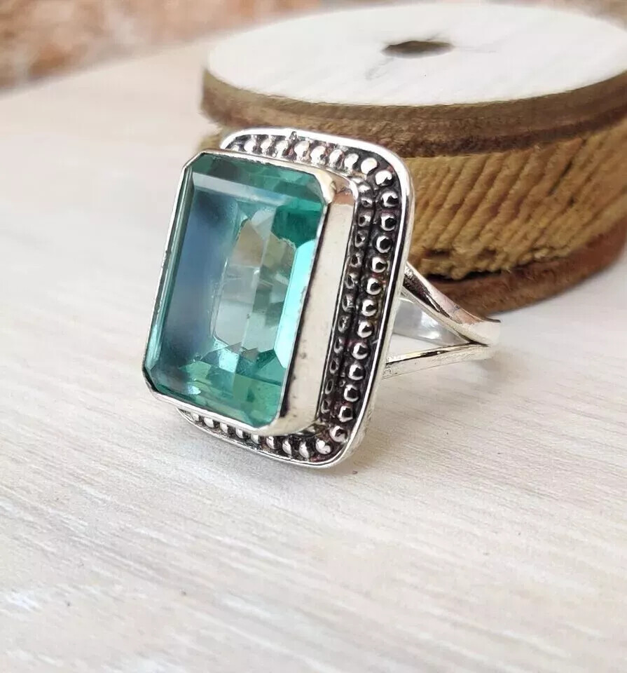925 Sterling Silver Handmade Blue Topaz Ring Designer Dainty Ring R103