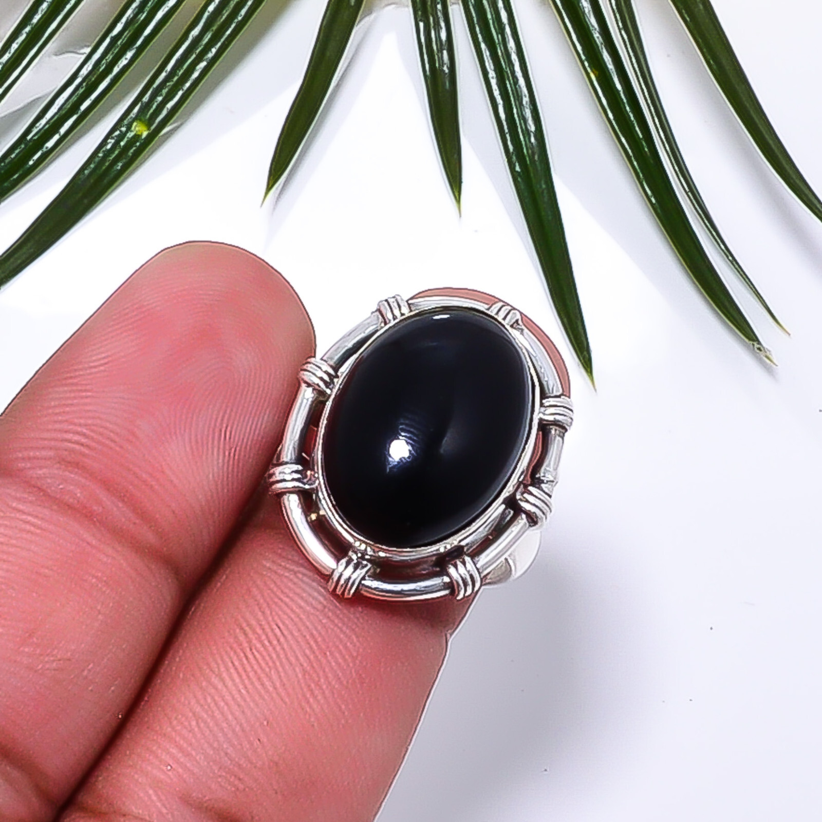 как выглядит Natural Black Onyx Gemstone 925 Sterling Silver Ring Christmas Jewelry Gift. фото