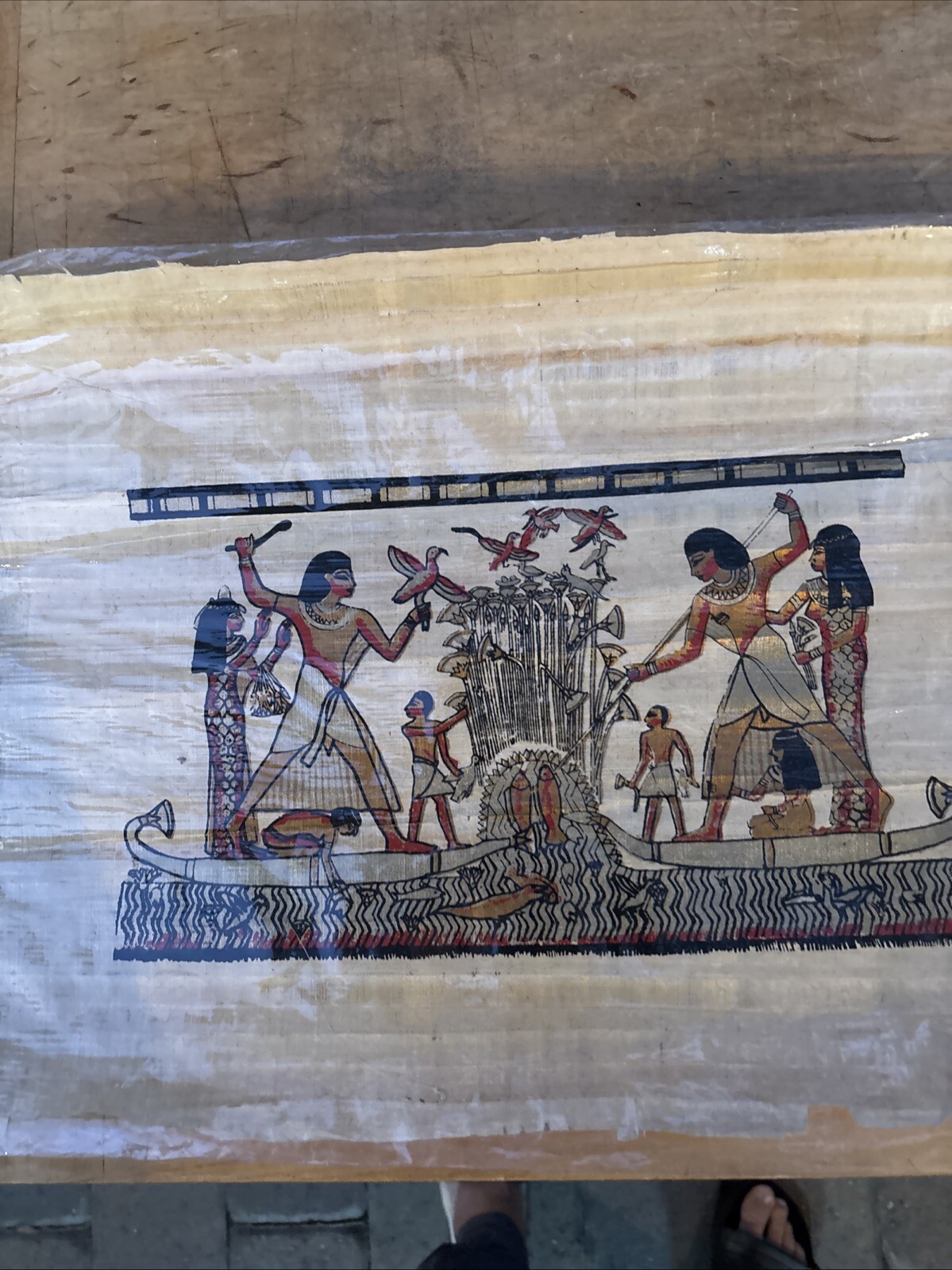 • Vintage Egyptian Papyrus Art Hand Painted. Lot Of 2
