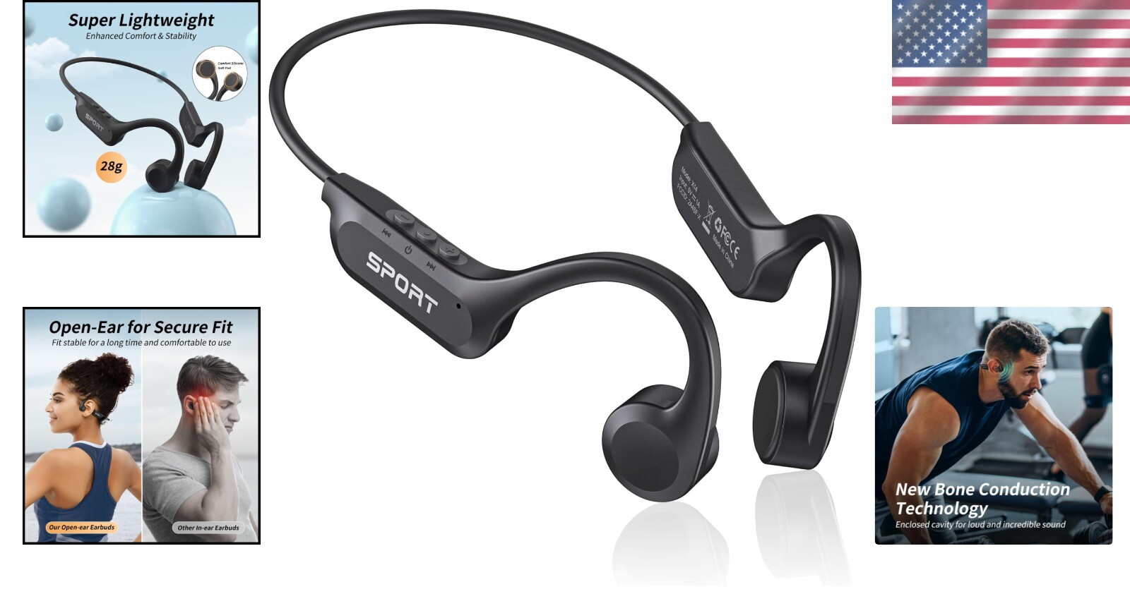 Lightweight Bluetooth 5.3 Bone Conduction Headphones - 8 Hrs Waterproof Playtime