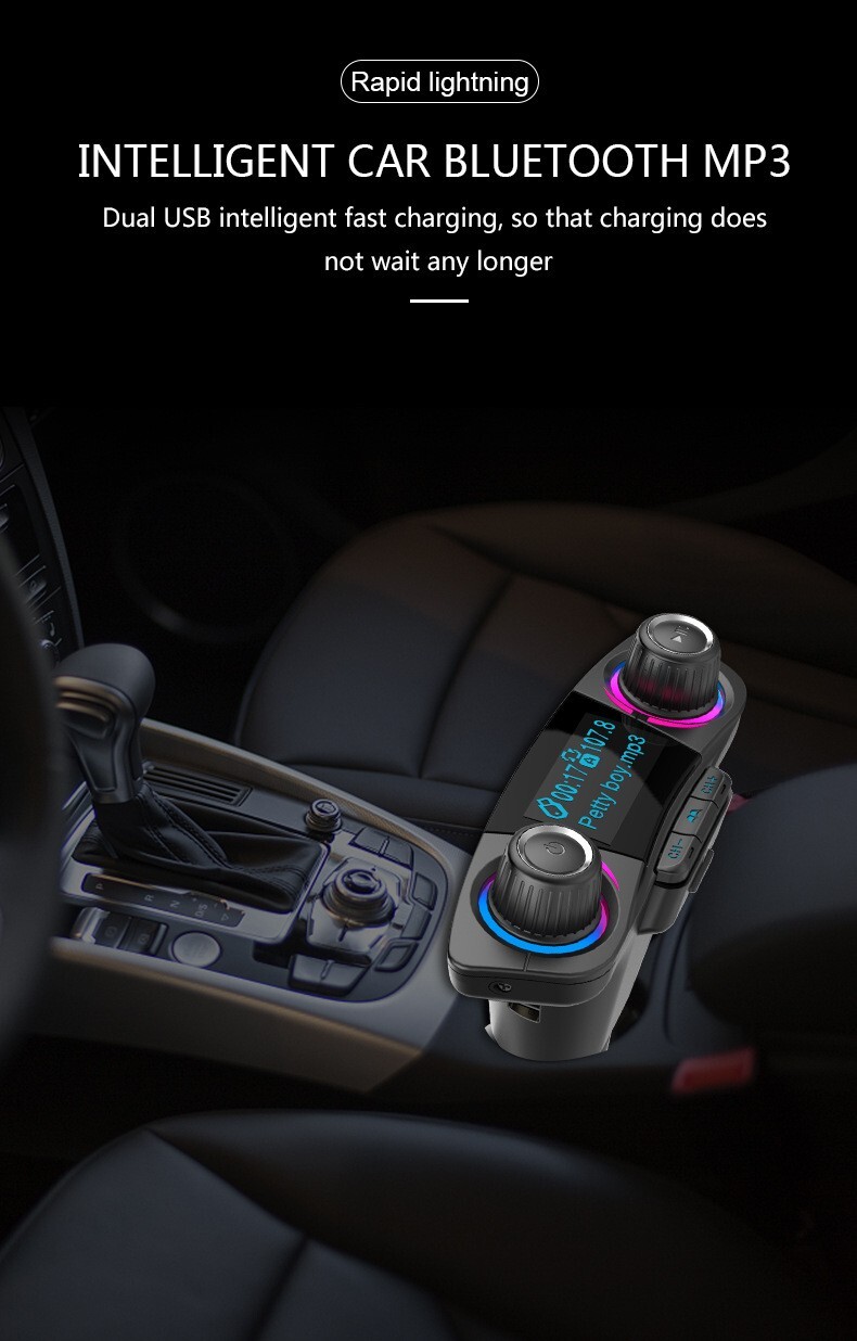 • Car FM Bluetooth Transmitter MP3 Player Aux Modulator Audio Kit W/2 USB Charge