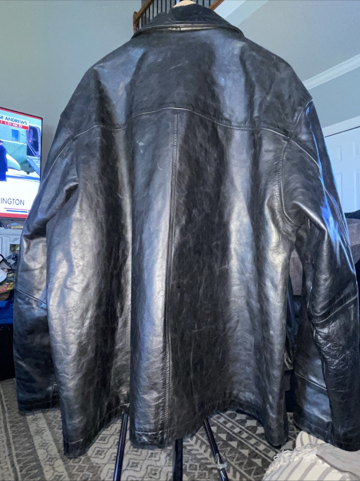 как выглядит Vintage 90s J.Crew Black Leather Arms Quilted Lining Jacket Coat Men s Size XL фото